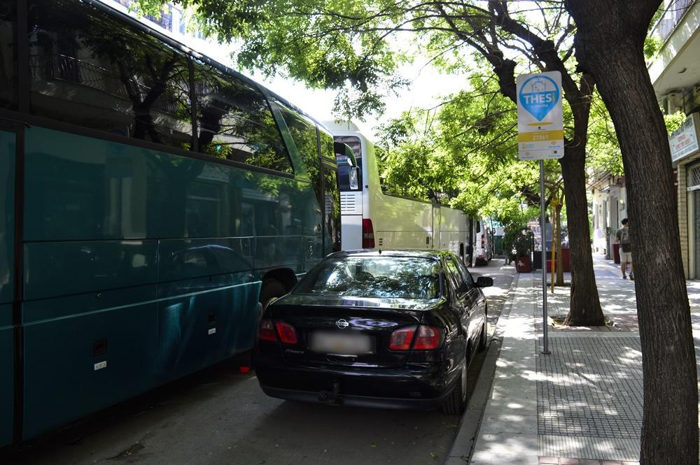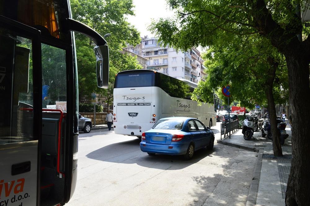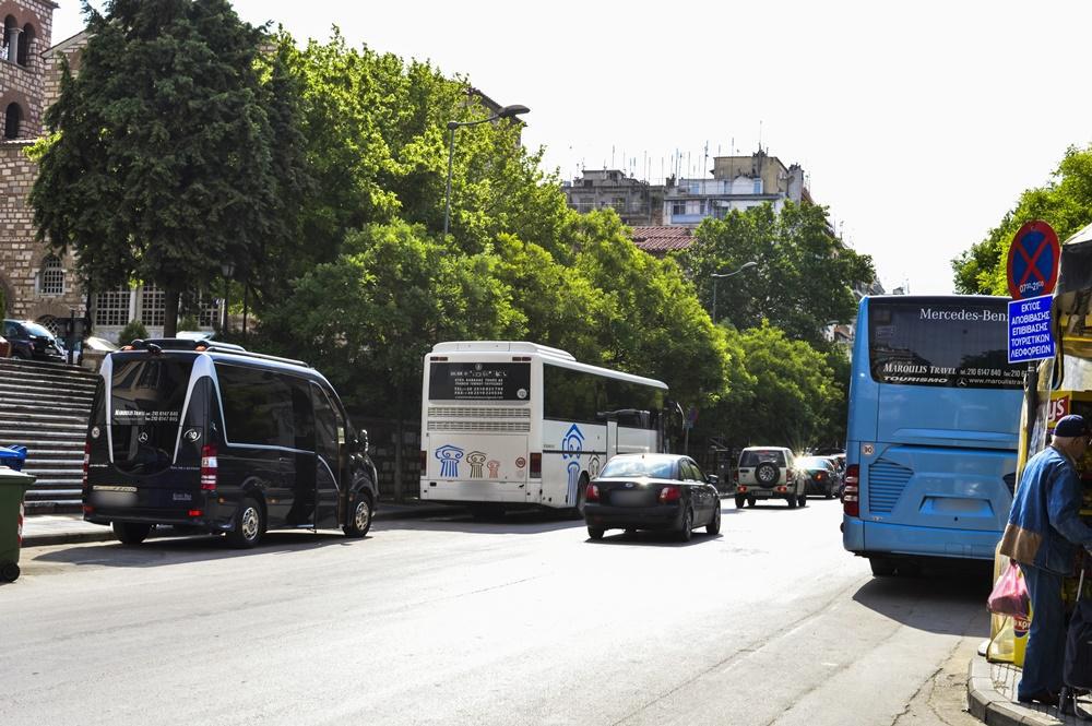 Σε συνήθεια – μάστιγα τείνει να μετατραπεί η πρακτική των οδηγών τουριστικών λεωφορείων να παρκάρουν πάνω σε κεντρικούς δρόμους της Θεσσαλονίκης, χωρίς να λογαριάζουν ότι εμποδίζουν την εύρυθμη κυκλοφορία των οχημάτων, αλλά κυρίως ότι αποτελούν κίνδυνο για τους πεζούς που θέλουν να περάσουν απέναντι.