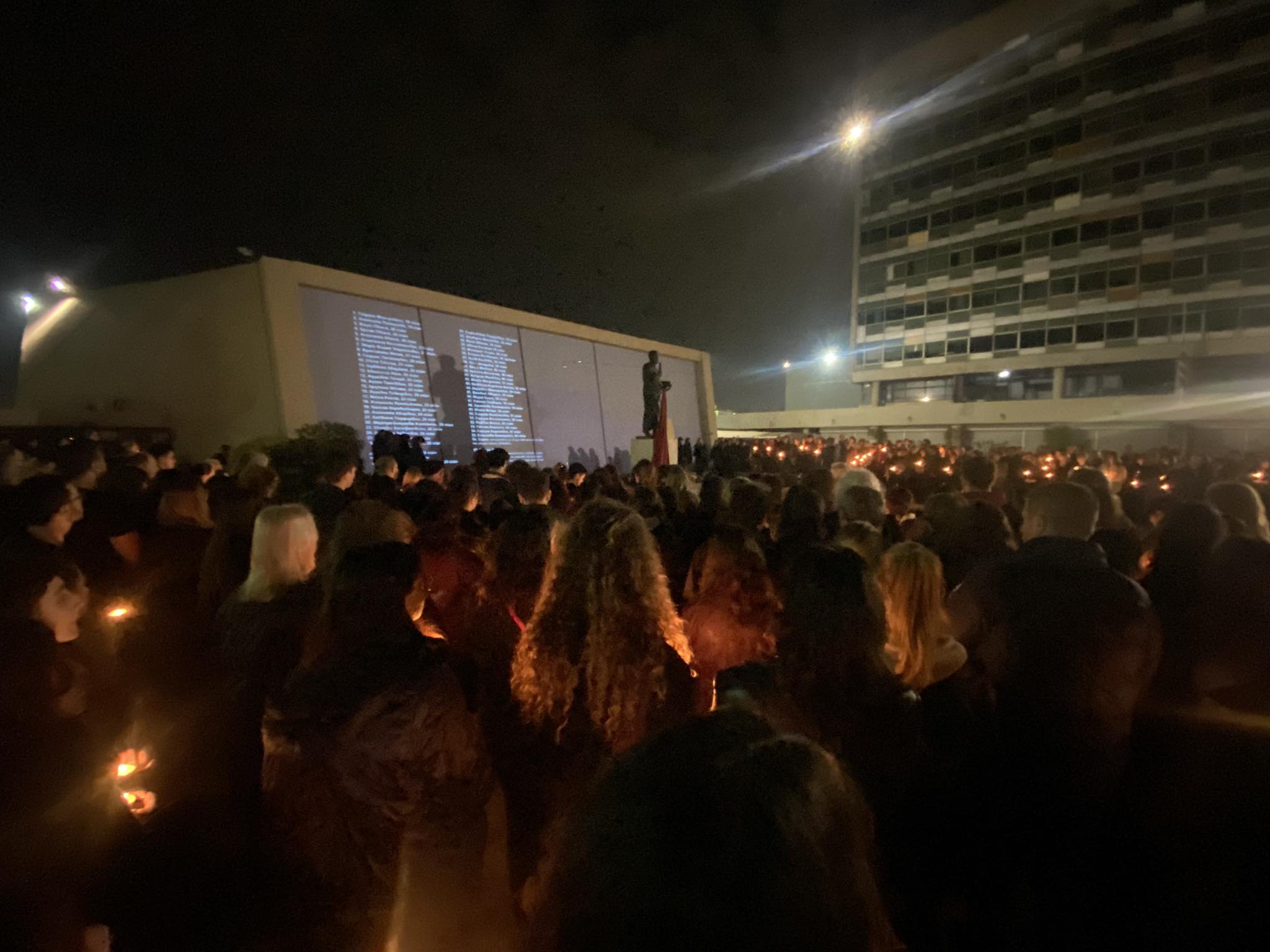 Φοιτητές ντυμένοι στα μαύρα φώναξαν τα ονόματα των νεκρών συμφοιτητών τους - Το πλήθος με αναμμένα κεριά, στέκεται βουβό, μουδιασμένο και δακρυσμένο.