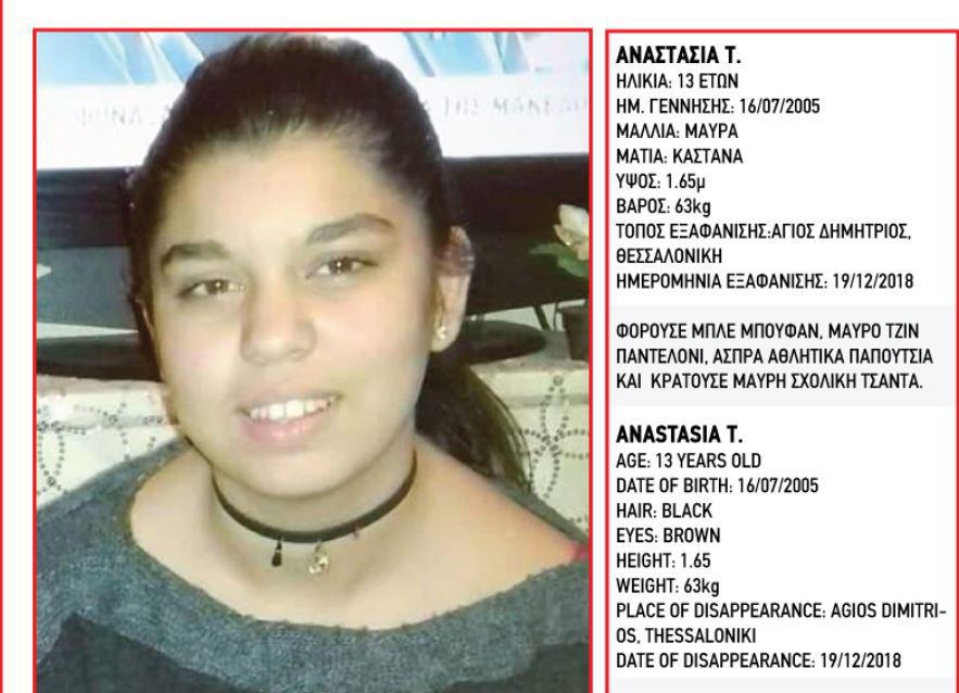 Η 13χρονη Αναστασία εξαφανίστηκε σήμερα.