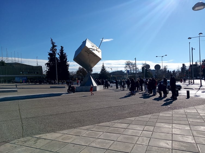 «Ουρές» έχουν σχηματιστεί για πολλοστή φορά έξω από τη ΔΕΘ, με πλήθος Θεσσαλονικέων να αναμένει επί ώρα για τη διενέργεια ενός rapid test.