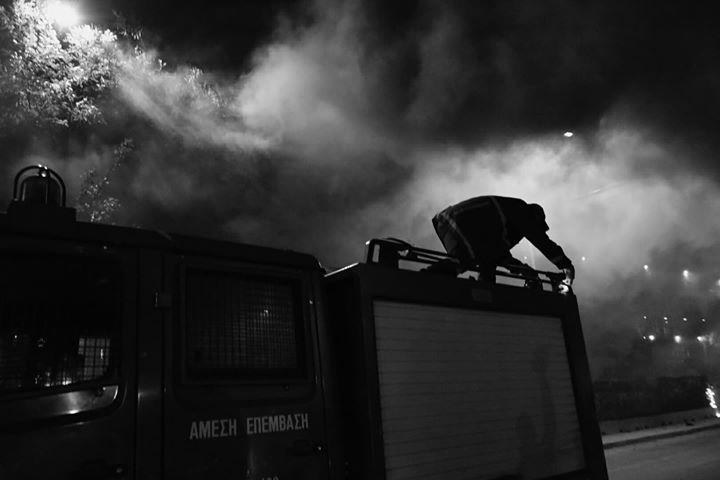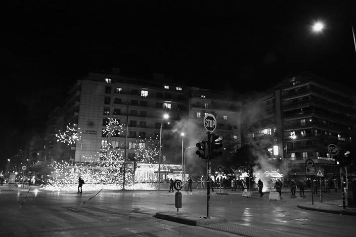 Ομάδα κουκουλοφόρων με ορμητήριο την υπό κατάληψη Θεολογική Σχολή του ΑΠΘ, πετούσαν πέτρες, αυτοσχέδιες βόμβες μολότοφ και πυροτεχνήματα στις δυνάμεις της Αστυνομίας, οι οποίες απαντούσαν με χειροβομβίδες κρότου λάμψης και χημικά.
