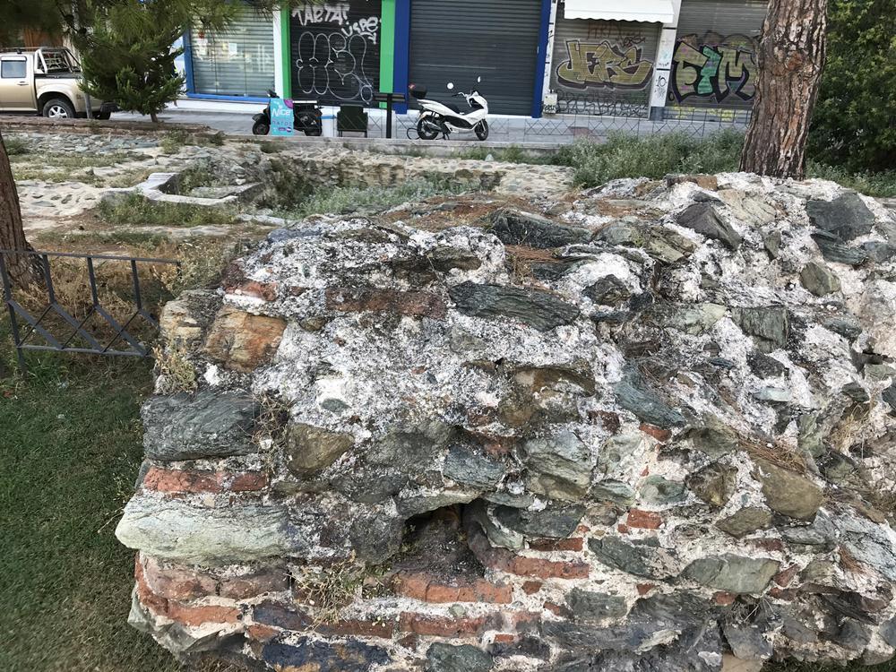 Τα τείχη της πόλης κρύβουν μια μεγάλη ιστορία που καθορίζει ουσιαστικά την πορεία της από το χθες στο σήμερα. Κατά τον 30 αιώνα μ.Χ., στην οχύρωση της πόλης προστέθηκαν τετράγωνοι πύργοι για την καλύτερη ενίσχυση του οχυρού. Τα ερείπια ενός από αυτούς σώζονται στην οδό Μελενίκου στο ύψος της Ροτόντας. Πρόκειται για χαρακτηριστικό αρχιτεκτονικό δείγμα ρωμαϊκού οχυρού, διαστάσεων 6,43 επί 6,35. Είναι χτισμένο από σχιστόλιθους και πλίνθους στο εξωτερικό του τμήμα, ενώ για το δάπεδο και άλλα τμήματά του χρησιμοποιήθηκαν μάρμαρα και υλικά από παλαιότερα μνημεία της πόλης.