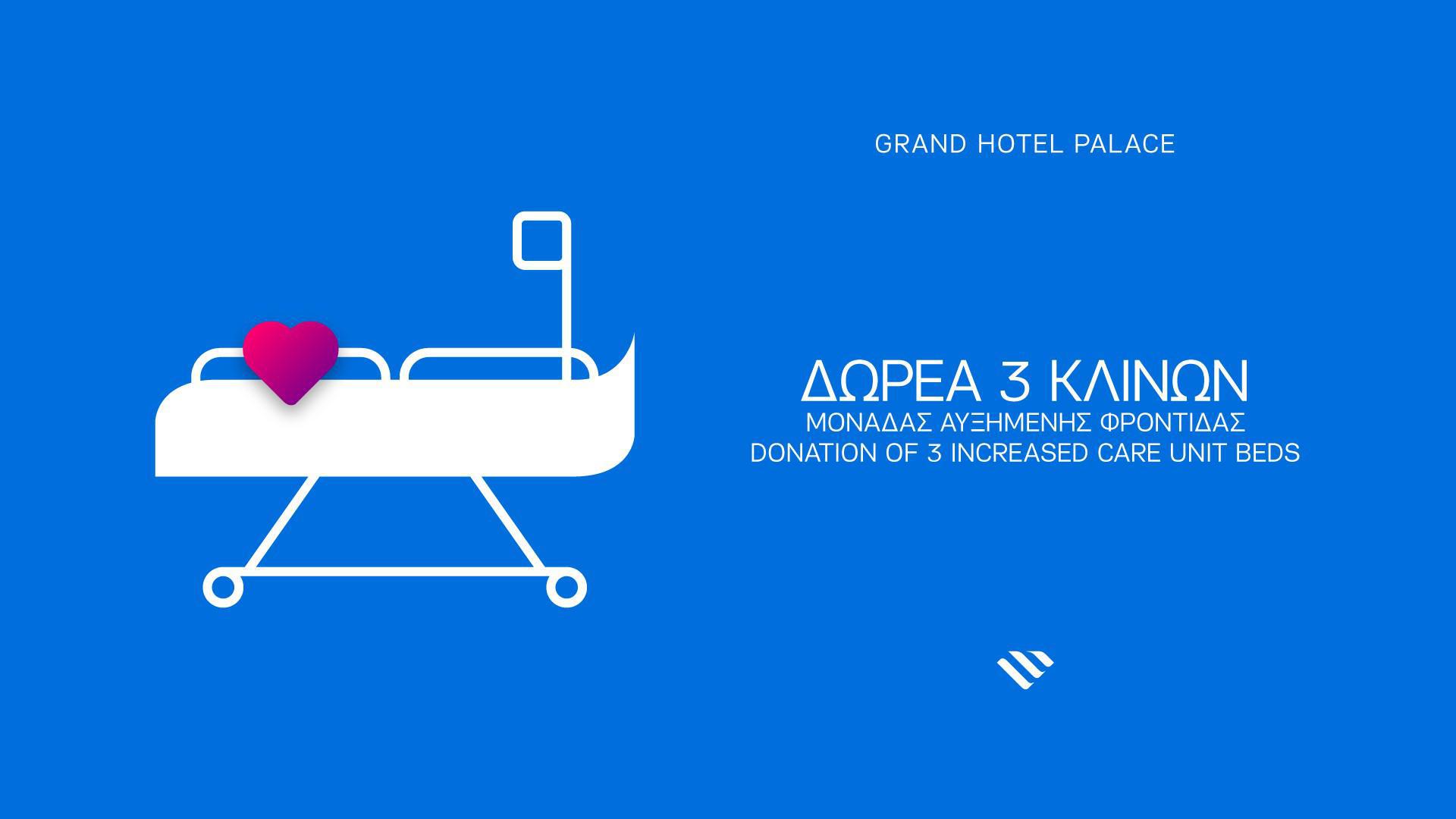 Το Grand Hotel Palace Thessaloniki προχώρησε στη δωρεά τριών (3) σύγχρονων ηλεκτρικών νοσοκομειακών κλινών Μονάδας Αυξημένης Φροντίδας στο Πανεπιστημιακό Γενικό Νοσοκομείο Θεσσαλονίκης ΑΧΕΠΑ ώστε να συμβάλλει στη μάχη των ανθρώπων που βρίσκονται στην πρώτη γραμμή αντιμετώπισης της επιδημίας του COVID-19.
