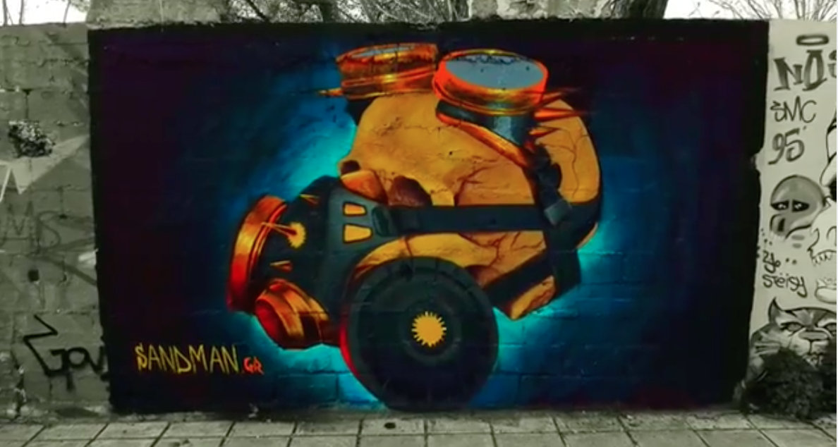 Το σχεδίασε ο sandman στον τοίχο του γηπέδου του Απόλλωνα. Αποδίδει εξαιρετικά την ασφυξία που ζούμε.
