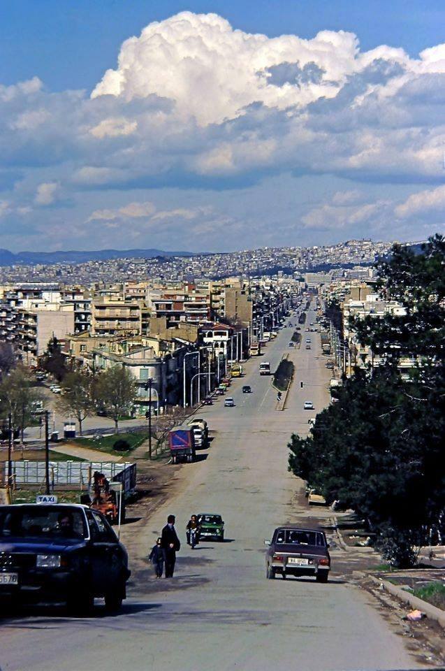 «Πολύ έντονες αναμνήσεις. Το ταξί είναι σταματημένο έξω από το ιδιωτικό σχολείο “Η Κυψέλη” νομίζω. Αργότερα λειτούργησε μόνο ως παιδικός σταθμός “Η Στοργή. Ο ναός των Τριών Ιεραρχών δε φαίνεται. Πρωτολειτούργησε στο υπόγειο το 1980. Στη συνέχεια υψώθηκε ο πάνω ναός. Το “τρίγωνο” σπίτι κάτω αριστερά υπάρχει ακόμη. Η αφετηρία του 31 ήταν πιο μέσα. Η γειτονιά μου με την αλάνα του Μ. Αλέξανδρου δεξιά, το υδραγωγείο απέναντι από την αλάνα…Κάθε σπίτι μια αυλή».