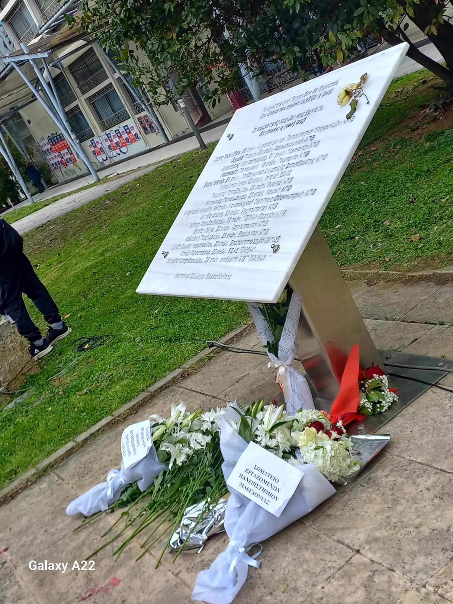 Ενός λεπτού σιγή και κατάθεση λουλουδιών στο μνημείο του ΑΠΘ για τα Τέμπη (ΕΙΚΟΝΕΣ-ΒΙΝΤΕΟ)
