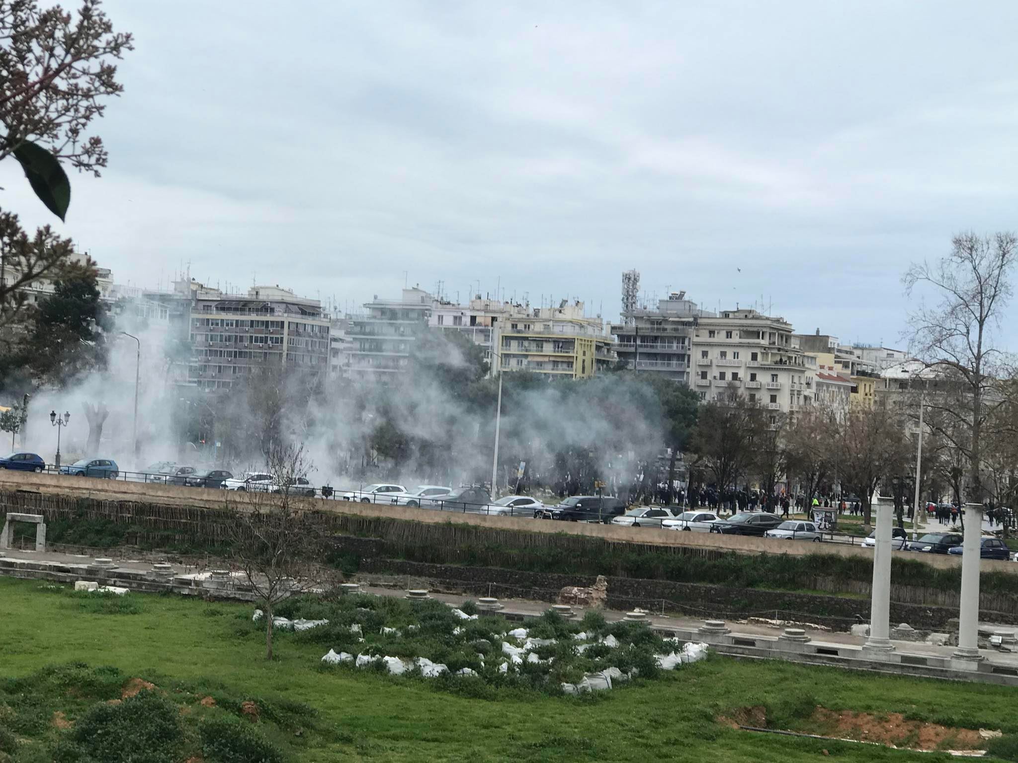 Επεισόδια σημειώθηκαν στη Θεσσαλονίκη στην περιοχή της Ρωμαϊκής Αγοράς , με κρότου λάμψης και ρίψη χημικών που πέταξε η αστυνομία στο πλήθος που ήταν συγκεντρωμένο, μετά το τέλος της πορείας για την τραγωδία στα Τέμπη.