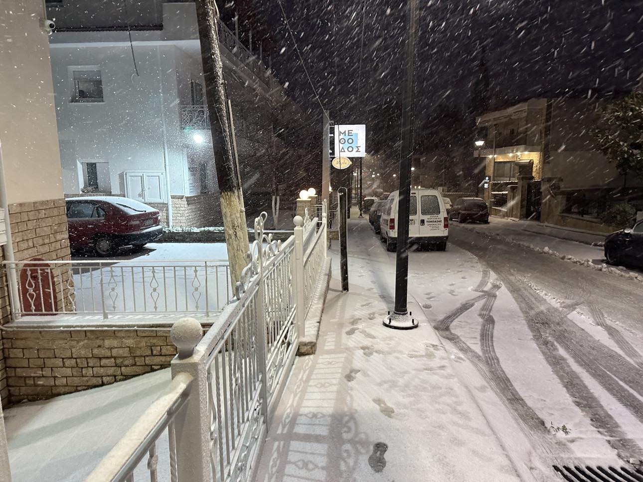 Παράλληλα, ξεκίνησε να πέφτει χιόνι και στο κέντρο της πόλης, στα Μετέωρα, στον Εύοσμο, στις Συκιές, στο Φίλυρο, στο Δερβένι και στον Τρίλοφο.