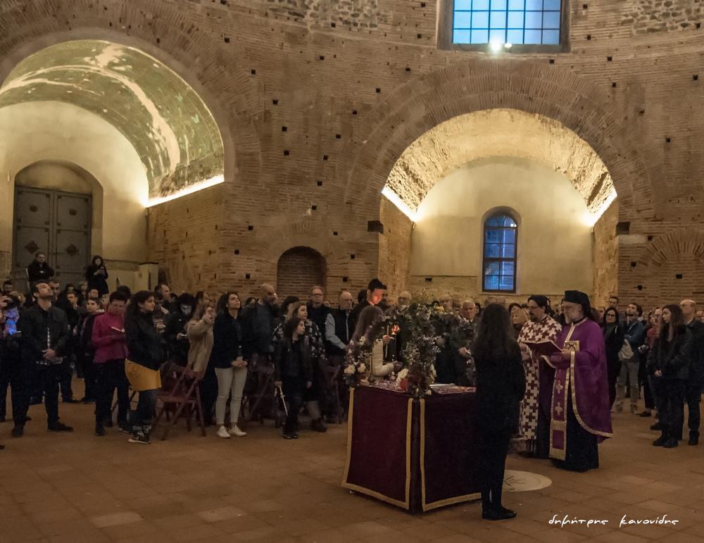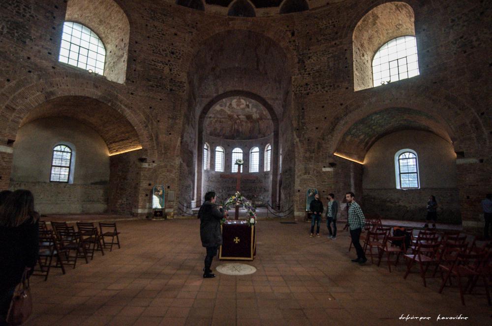 Οι λιγοστοί πιστοί που επιλέγουν τη Ροτόντα (αφιερωμένη στον Άγιο Γεώργιο) έχουν μια μοναδική εμπειρία κατάνυξης και μεγαλείου. Ο ιερέας τελεί την Λειτουργία χωρίς μικρόφωνα, ενώ η ακουστική του μνημείου είναι καθηλωτική.