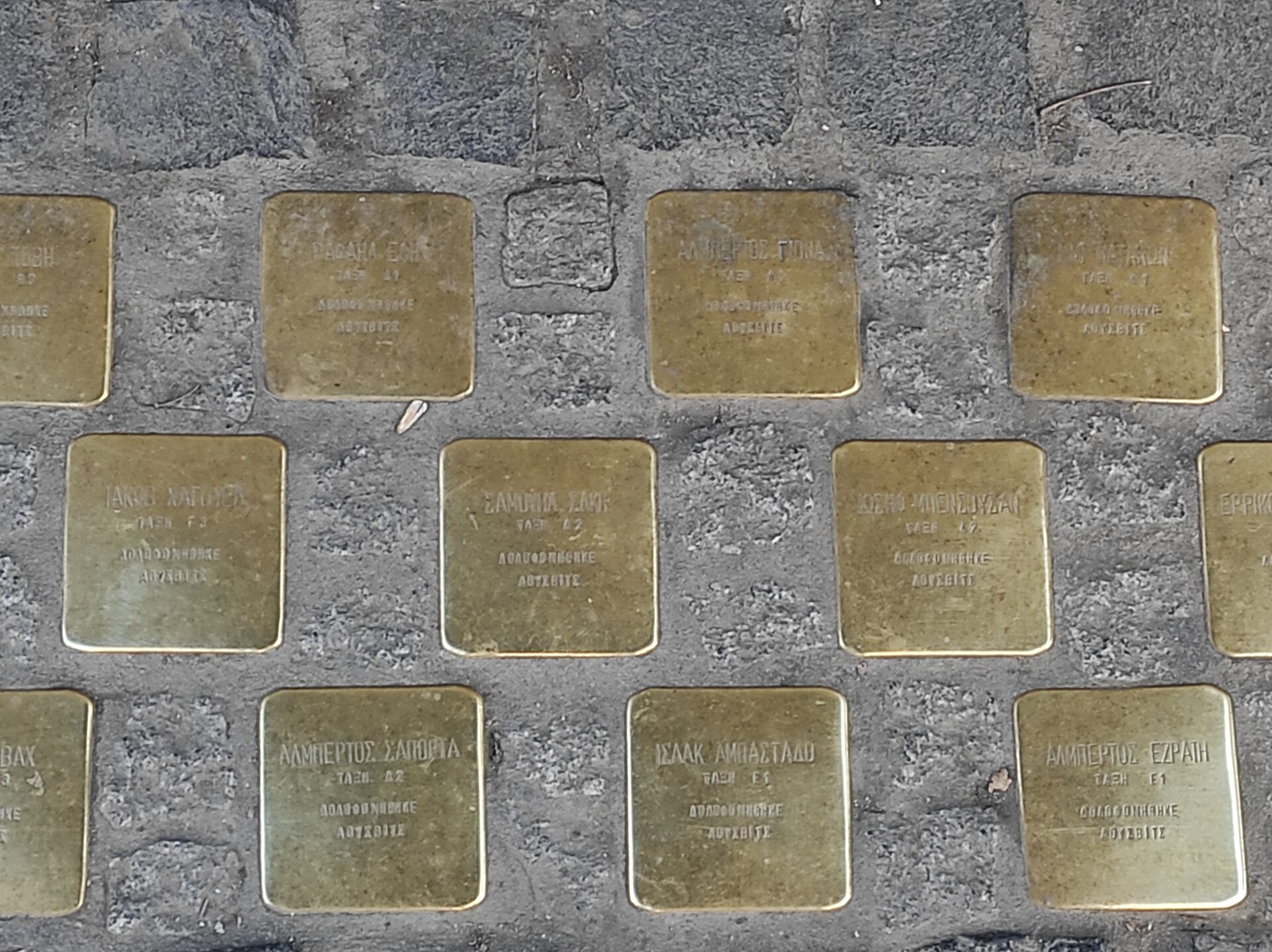 Όταν βρεθείτε στην είσοδο των δύο κτιρίων, στρέψτε το βλέμμα σας προς τα κάτω και παρατηρήστε τις μπρούτζινες πλάκες που έχουν τοποθετηθεί στο πεζοδρόμιο, ως φόρο τιμής σε εβραίους μαθητές του γυμνασίου που έχασαν την ζωή τους κατά τον Β’ παγκόσμιο πόλεμο.