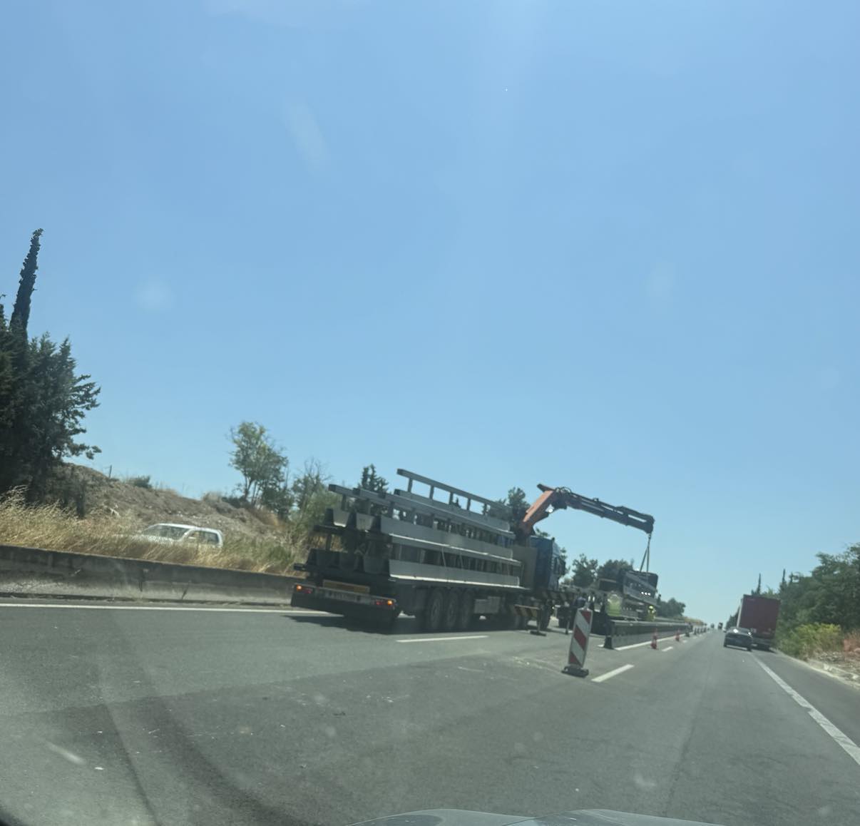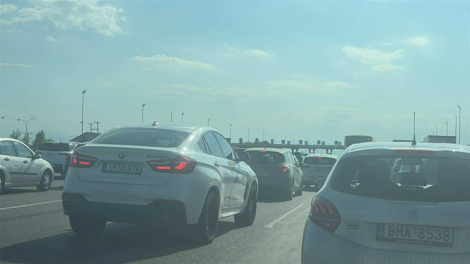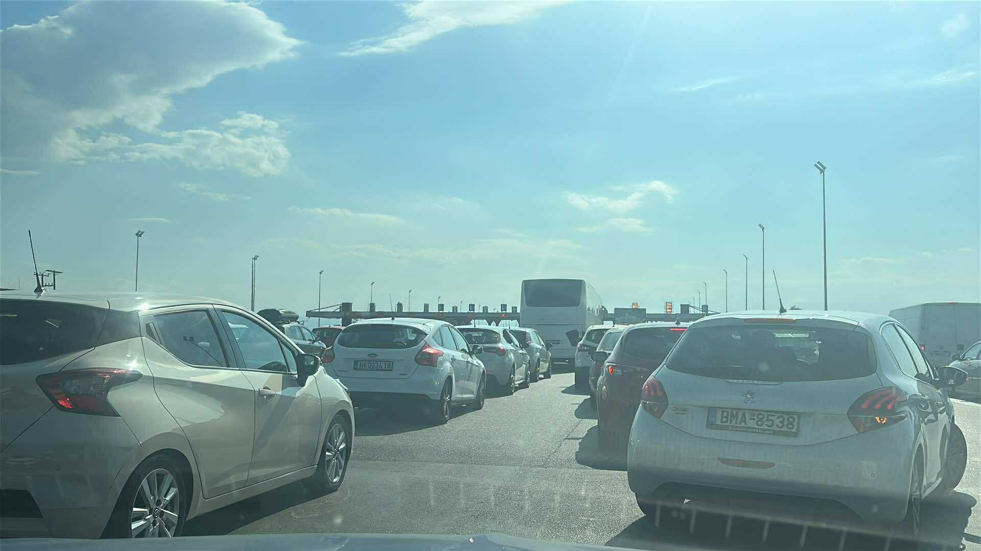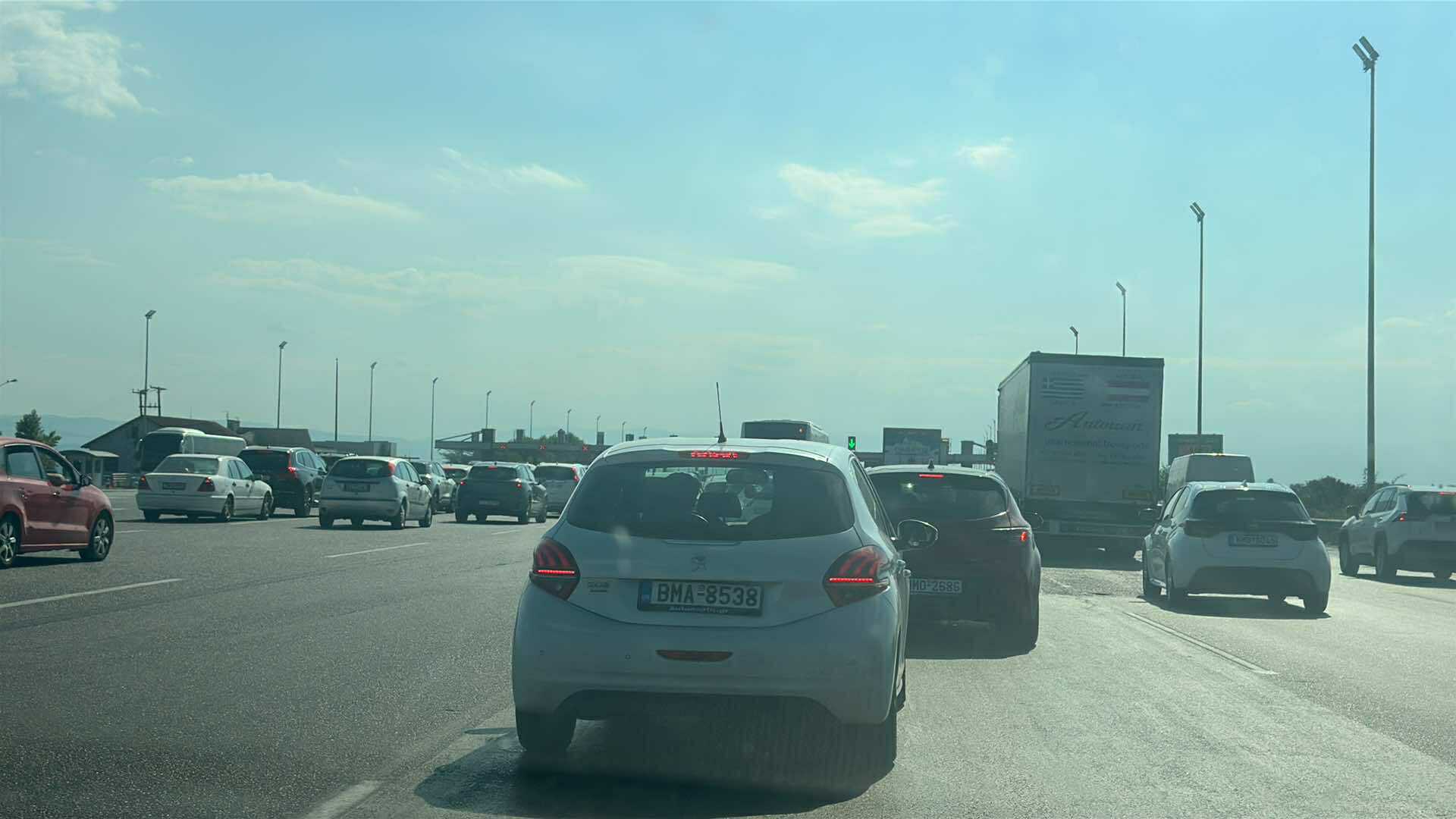 Το πρόβλημα εντείνεται και από εργασίες τοποθετησης στηθαίων μετά τα διόδια, λόγω των οποίων γίνονται μικρές εκτροπές στην κυκλοφορία.
