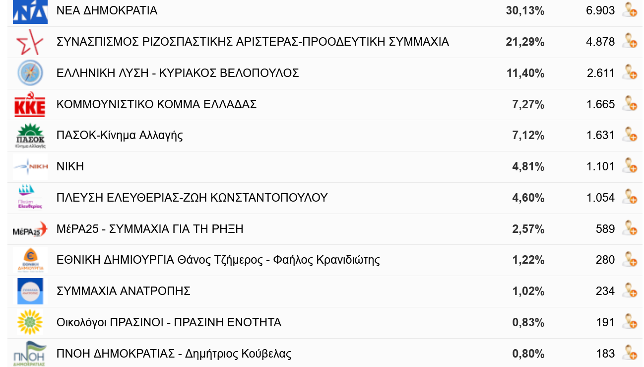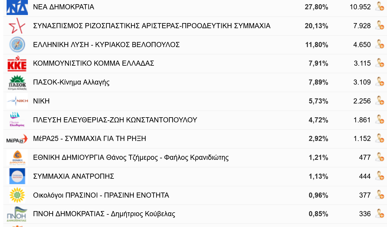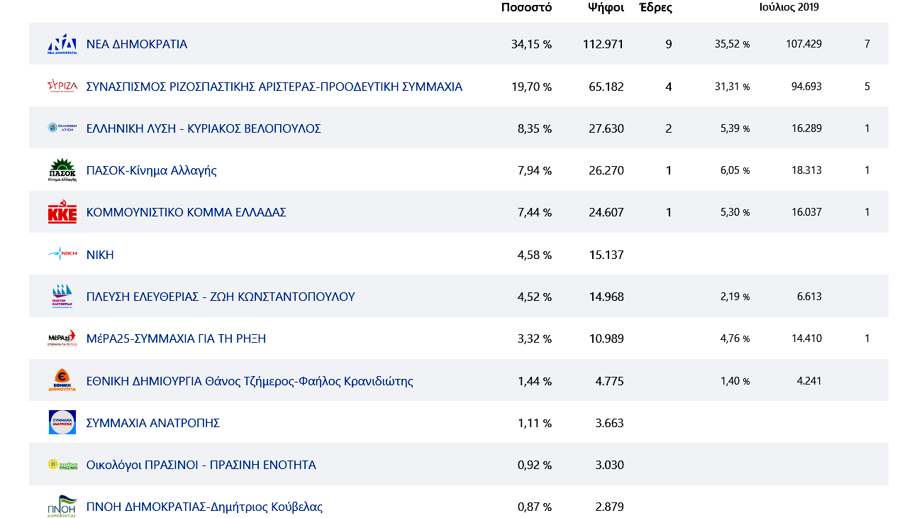 Η πρωτιά της ΝΔ και η καθίζηση του ΣΥΡΙΖΑ, τα κέρδη για ΠΑΣΟΚ - ΚΚΕ - Ελληνική Λύση και οι εκπλήξεις των εκτός Βουλής.