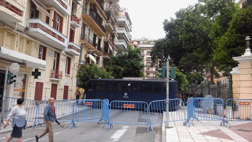 Κλειστή είναι ήδη αυτή την ώρα η οδός Αγίου Δημητρίου από το ύψος του ΥΜΑΘ και μετά. Η αστυνομία με τις κλούβες της έχει αποκλείσει την κυκλοφορία στις παρακείμενες από το ΥΜΑΘ οδούς. Λίγος κόσμος έχει συγκεντρωθεί στο σημείο μέχρι στιγμής. Κλειστή είναι αυτή την ώρα και η οδός Κασσάνδρου.