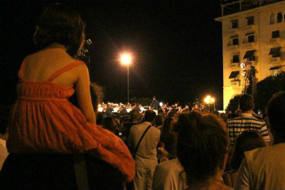 Πιο κάτω, στην Αριστοτέλους, ο Μπουτάρης είπε λίγα λόγια, μεστά, στο πλήθος που περίμενε το ραντεβού της Κρατικής Ορχήστρας Θεσσαλονίκης με το Αυγουστιάτικο φεγγάρι. Κανείς δεν ζητωκράυγασε, κανείς δεν δυσανασχέτησε. Η πολη σαν να ημέρεψε. Σα να άνοιξε για λίγο ένα παράθυρο σε μία βαθύτερη αστική συλλογική συνείδηση και περηφάνεια για την ομορφη πληγωμένη πόλη. Όχι τα λόγια του Δημάρχου, αλλά η υποβλητικοτητα του αυστηρού τελετουργικού που συνοδεύει την κλασική μουσική και η χαρά να την ακούς από τη δική σου Συμφωνική Ορχήστρα στην πιο όμορφη πλατεία σου, ξανάσμπρωξε το εκκρεμές προς την πλευρά της αισιοδοξίας. Εκατοντάδες οι όρθιοι, δεν έφυγε κανείς.