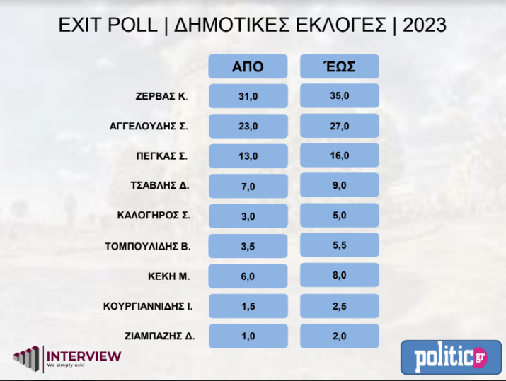 Exit Poll Interview: Ζέρβας με Αγγελούδη στο δεύτερο γύρο