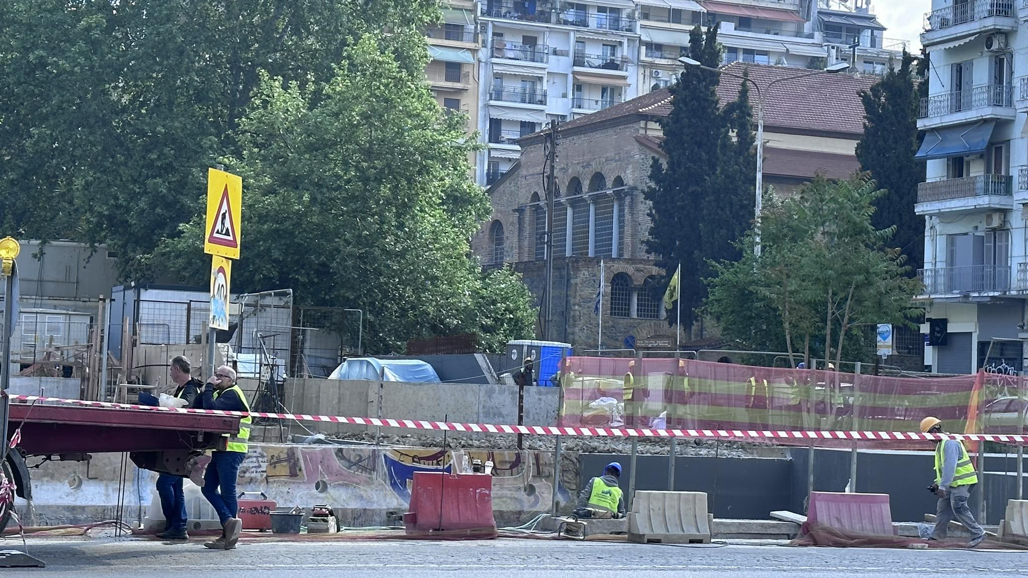 Στο σταθμό Αγίας Σοφίας οργασμός. Έφυγαν μάνι-μάνι λαμαρίνες, έρχονται τοιχάκια έτοιμα με φορτηγά, τοποθετούνται, βάφονται επί τόπου. Χαμός.