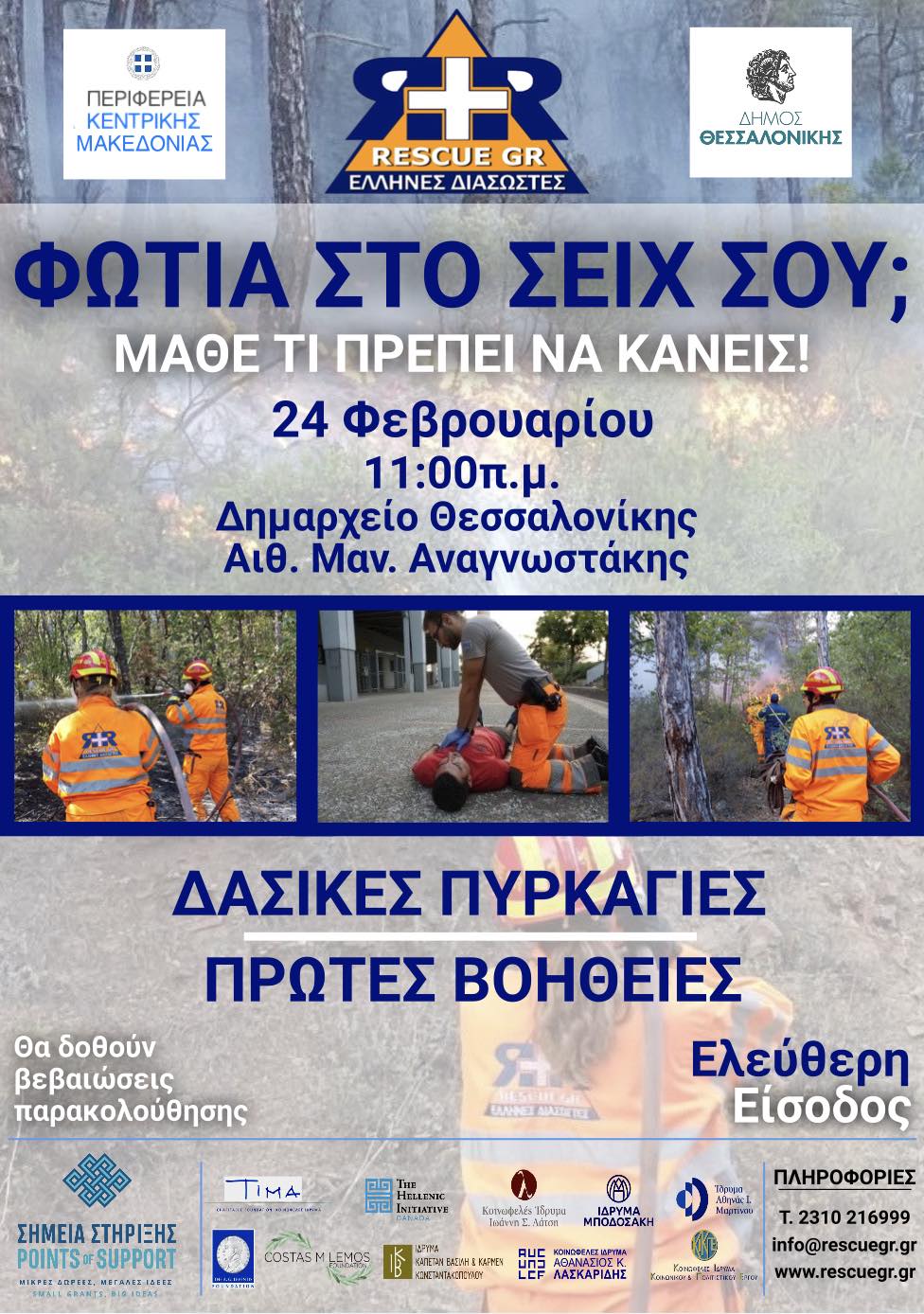 Μια ιδιαίτερα ενδιαφέρουσα ημερίδα με τίτλο «Φωτιά στο Σέιχ Σου; Μάθε τι πρέπει να κάνεις!» διοργανώνεται το Σάββατο 24 Φεβρουαρίου στις 11.00 π.μ. στην αίθουσα «Μανόλης Αναγνωστάκης» του Δημαρχείου Θεσσαλονίκης από τους «Έλληνες Διασώστες».