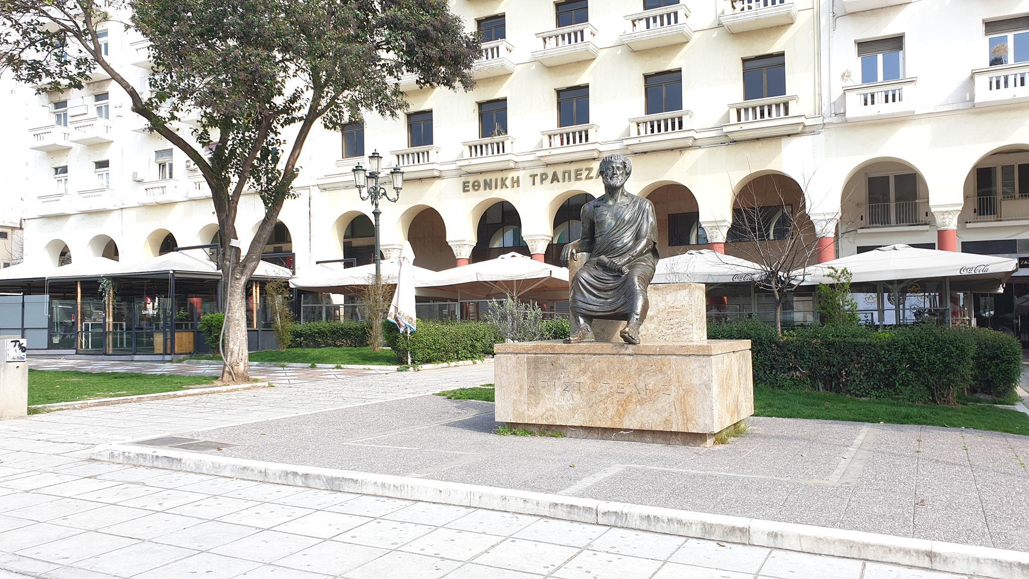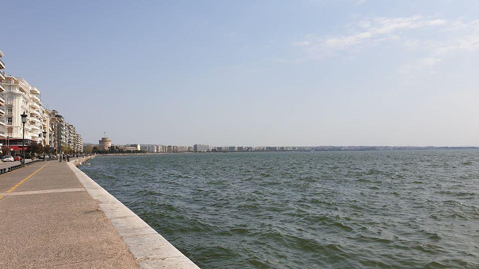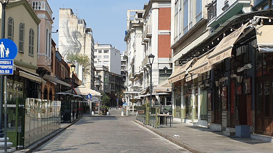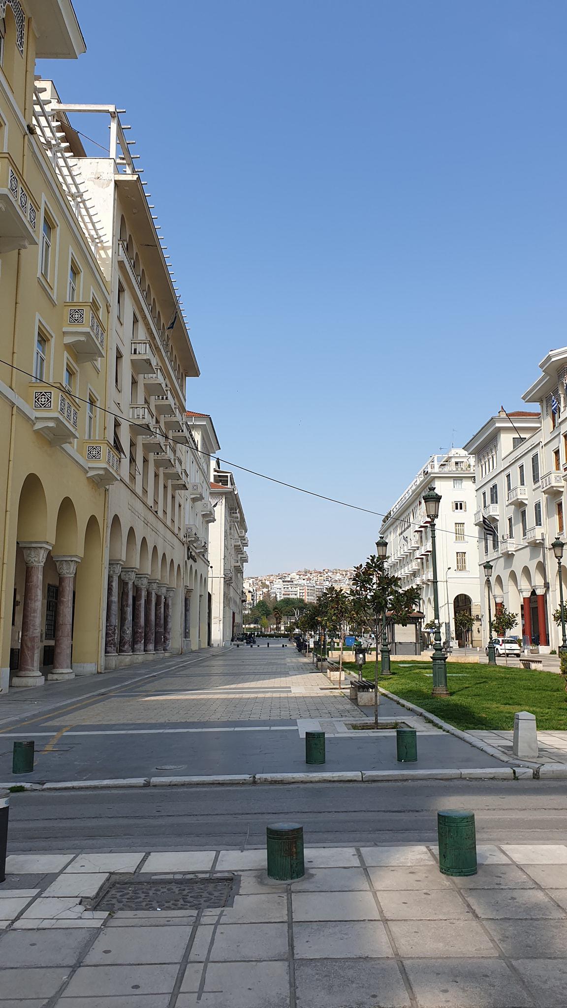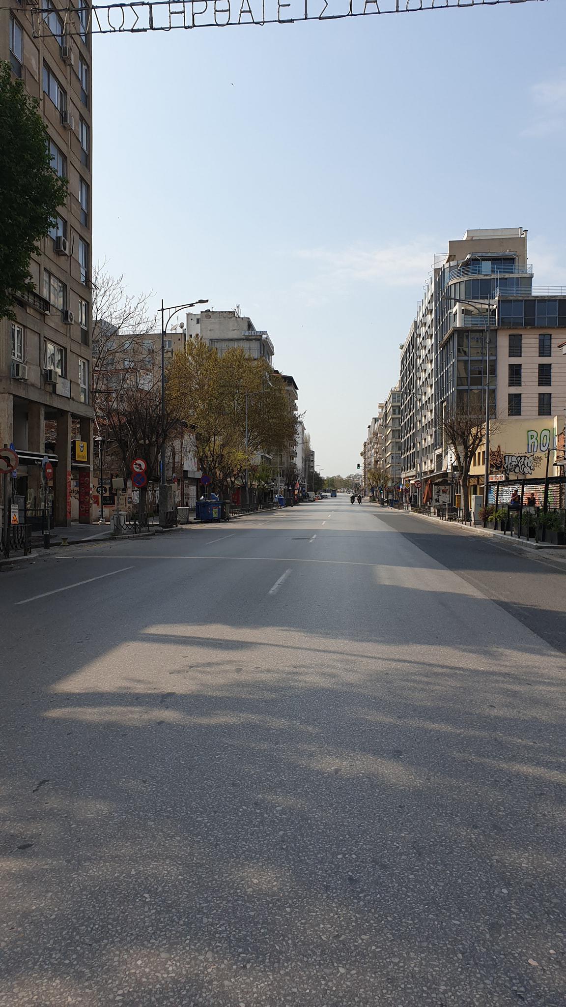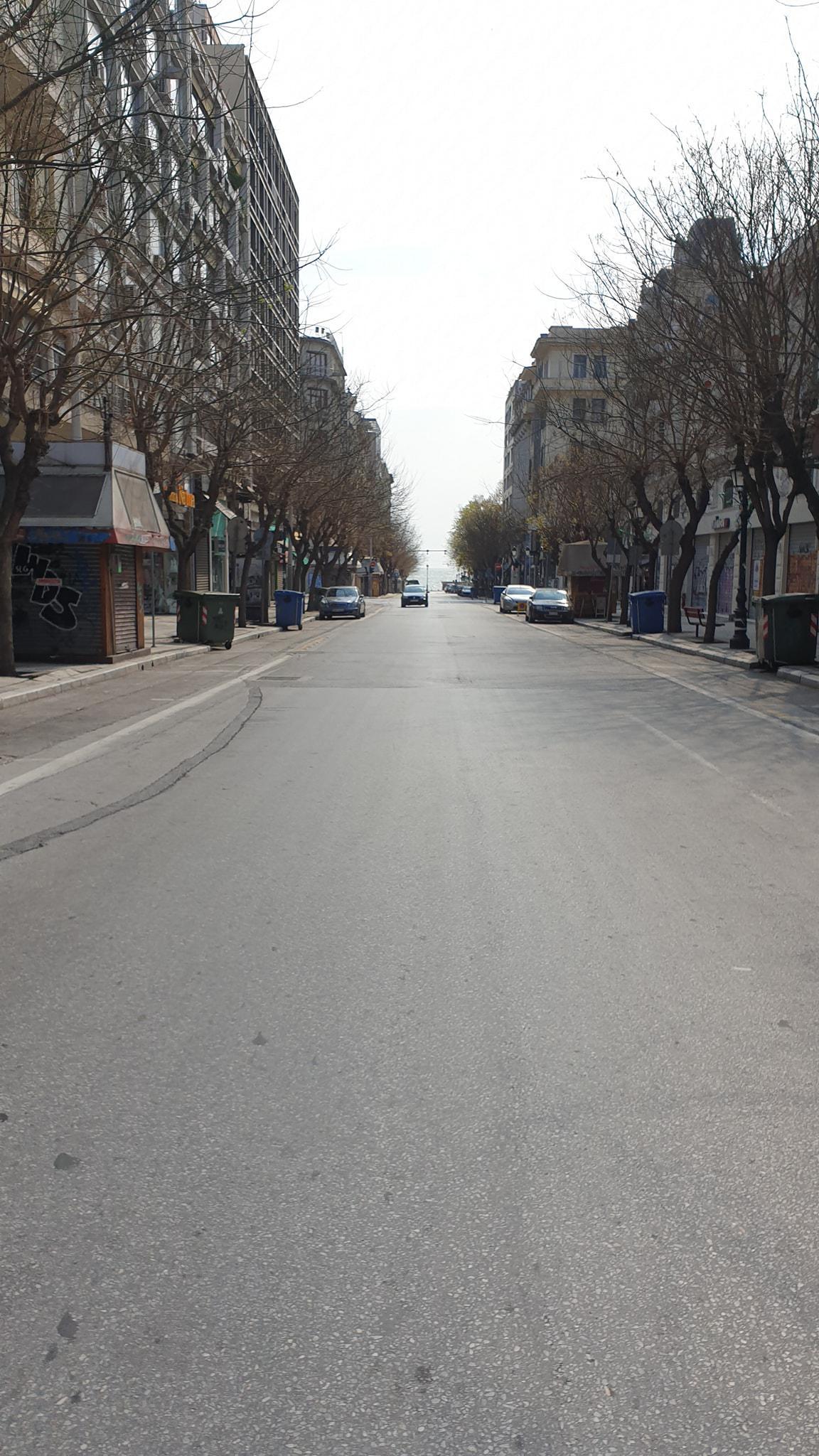 O Philippe Ray, ο Γάλλος πρόξενος στη Θεσσαλονίκη και διευθυντής του Γαλλικού Ινστιτούτου κάνει μια Κυριακάτικη βόλτα στην άδεια πόλη.