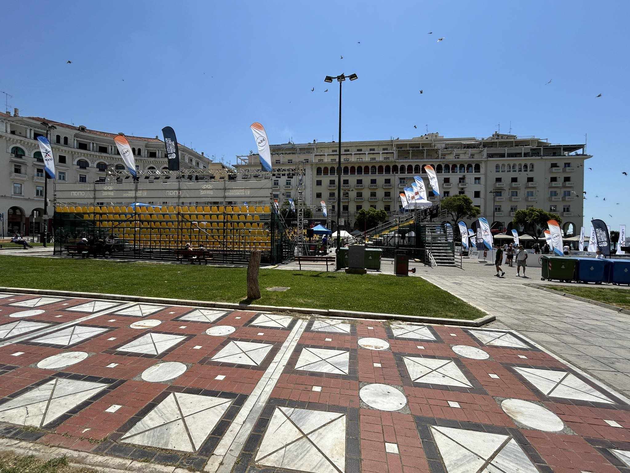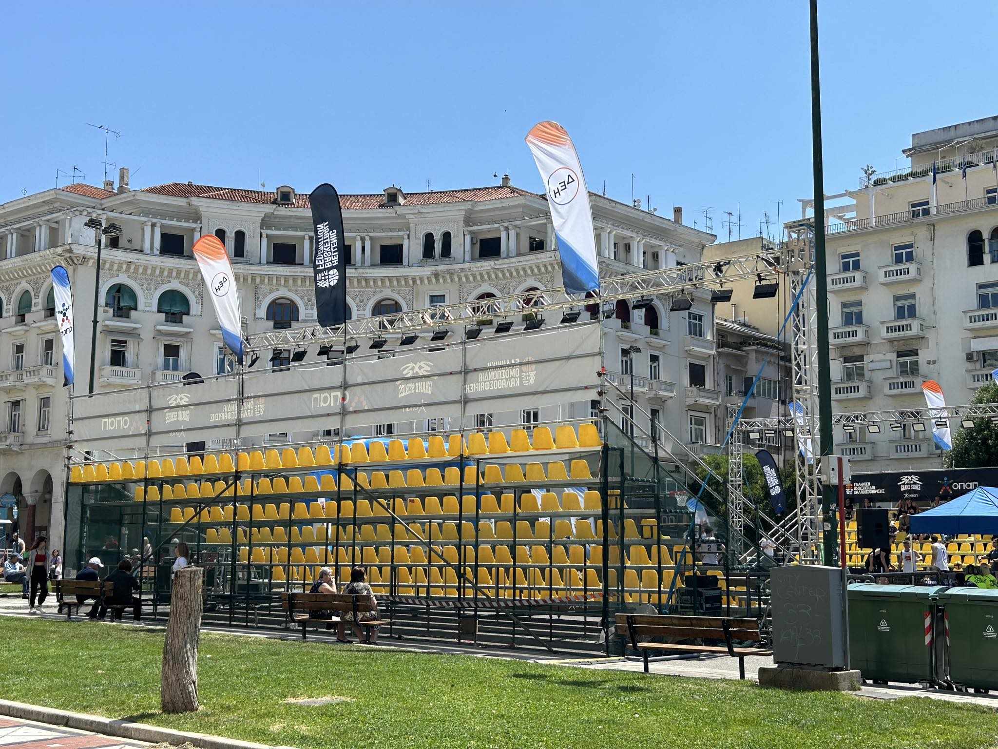 Ένα μεγάλο γήπεδο μπάσκετ στήθηκε στην Πλατεία Αριστοτέλους, καθώς στο σημείο έχουν στηθεί τα γήπεδα και οι κερκίδες που θα φιλοξενήσουν τους θεατές της διοργάνωσης που θα πραγματοποιηθεί τις δύο πρώτες ημέρες του Ιουνίου (01-02/06).
