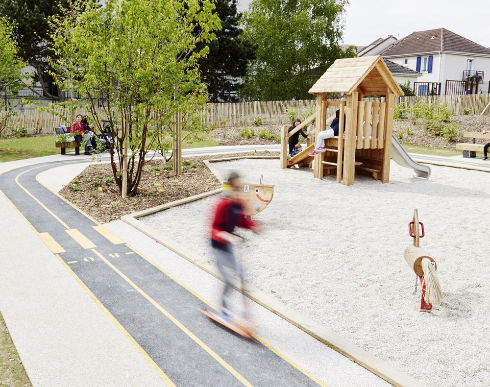 Απεναντίας στην Ευρώπη σκέφτονται διαφορετικά. Στην πόλη της Βόρειας Γαλλίας Courdimanche το αρχιτεκτονικό σχέδιο της παιδικής χαράς είχε στο επίκεντρο του τον συνδυασμό του πάρκου με έναν ανοιχτό, δημόσιο χώρο δραστηριοτήτων.