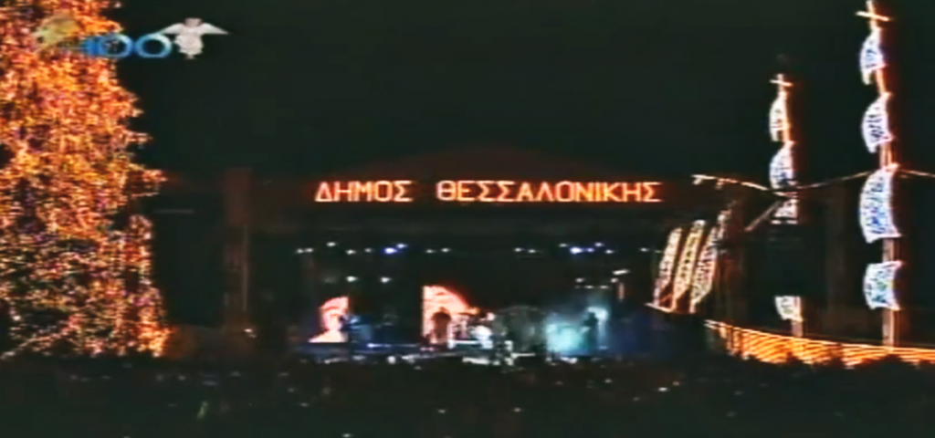 Το 2009 μπροστά από το “Καράβι” ο Μιχάλης Χατζηγιάννης. Στο 05:40 ζητάει τα “Χέρια ψηλά γιατί η αγάπη είναι σήμερα εδώ στη Θεσσαλονίκη” και γιατί “απόψε γιορτάζει η Θεσσαλονίκη“: