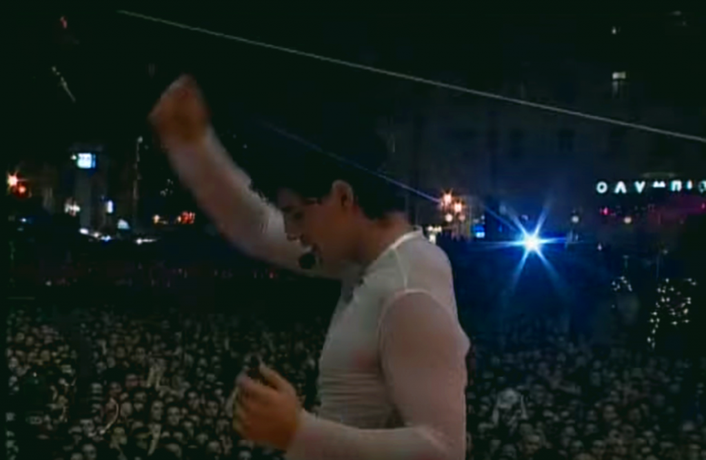 Ανοιχτές ομπρέλες, χιλιάδες κόσμου και ο Ρέμος υπό βροχή στη σκηνή το 2004 να τραγουδάει το “Μια Αναπνοή”. Στο 06:10 και μετά ευχαριστεί εκτενώς τον τότε δήμαρχο, Βασίλη Παπαγεωργόπουλο, ενημερώνει πως δεν εμφανιζόταν κάπου εκείνη την περίοδο κλπ:
