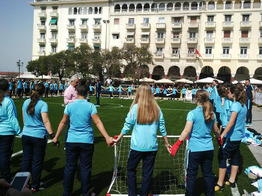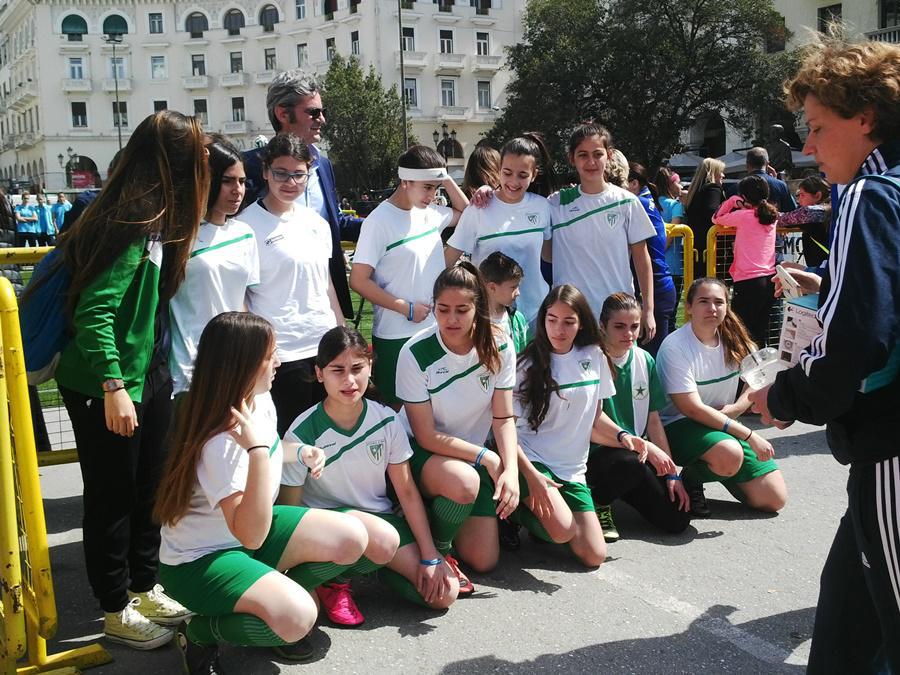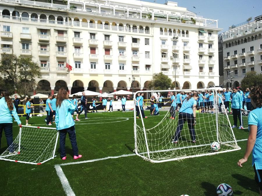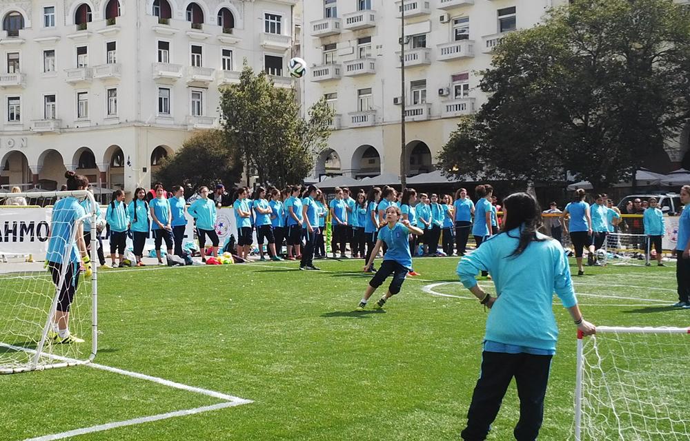 Σε γήπεδο ποδοσφαίρου για νεαρά κορίτσια από τοπικές ποδοσφαιρικές ακαδημίες και σχολεία μεταμορφώθηκε σήμερα η Πλατεία Αριστοτέλους.