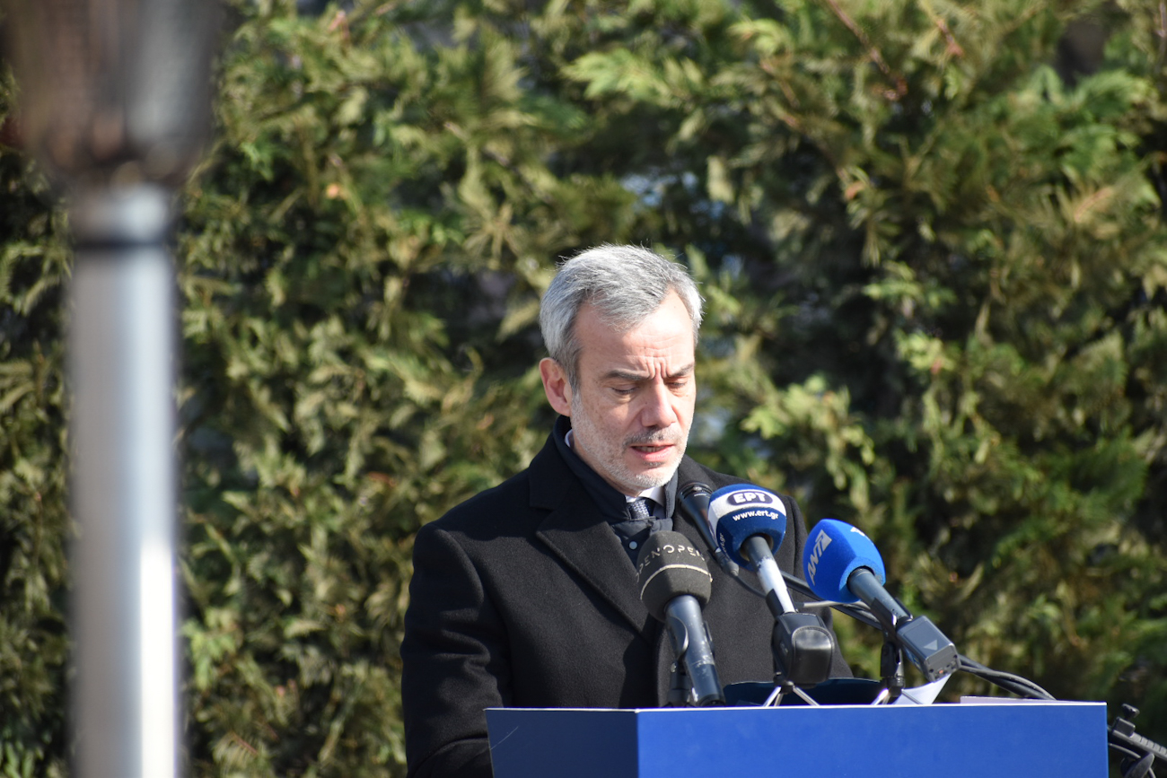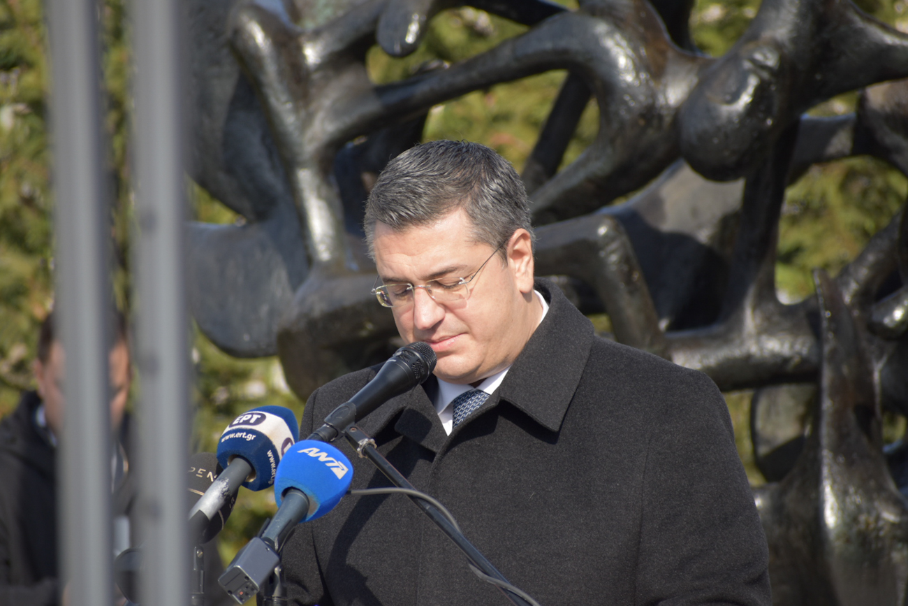 Η τελετή ολοκληρώθηκε με κατάθεση στεφάνων στο Mνημείο του Ολοκαυτώματος.