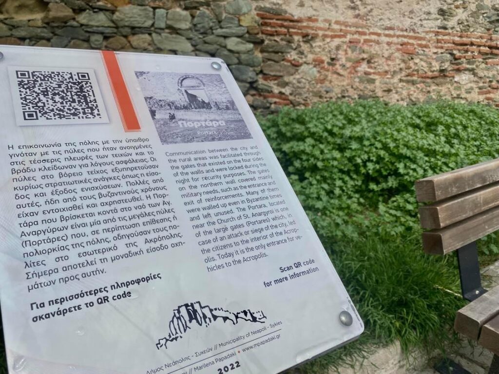 Μια μικρή πινακίδα στο πίσω μέρος του μνημείου μας πληροφορεί για τις πύλες της Άννας της Παλαιολογίνας που ανοίχτηκαν κατά τα έτη 1335-1336, όταν η αυτοκράτειρα είχε εγκατασταθεί στην πόλη.