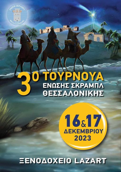Η Ένωση Σκραμπλ Θεσσαλονίκης διοργανώνει το σαββατοκύριακο 16, 17 Δεκεμβρίου το 3ο Τουρνουά Σκραμπλ Θεσσαλονίκης στο Ξενοδοχείο Λαζαριστές (Lazart Hotel).