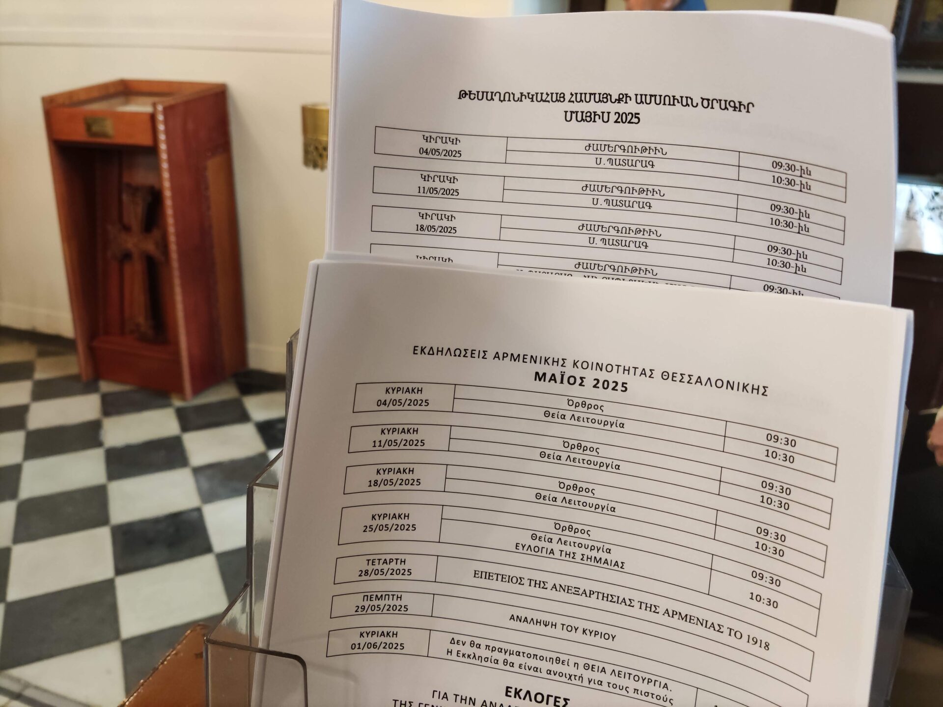 Οι διαφορές με το ορθόδοξο τυπικό υπαρκτές. Στους τοίχους δεν υπάρχουν αγιογραφίες αλλά μόνο κάποιες θρησκευτικές εικόνες που φέρνουν λίγο σε βυζαντινή τεχνοτροπία. Οι ιερείς, χωρίς μακριά μαλλιά και τριχοφυΐα στο πρόσωπο, φορούν πορφυρά άμφια και ψάλλουν στα αρμενικά. Η μόνη λέξη που ξεχωρίζουμε στα ελληνικά είναι η λέξη «Χριστός». Ένας πιστός γύρω στα 40 περιφέρεται στην εκκλησία, μας πλησιάζει και μας εύχεται κάτι στα αρμενικά, πάλι με τη λέξη «Χριστός» να ξεχωρίζει στα αυτιά μας. Χαμογελάμε ευγενικά, και ας μην καταλαβαίνουμε.
