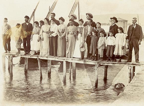 Κάτοικοι της συνοικίας σε μια από τις ιδιωτικές αποβάθρες των παραθαλάσσιων επάυλεων