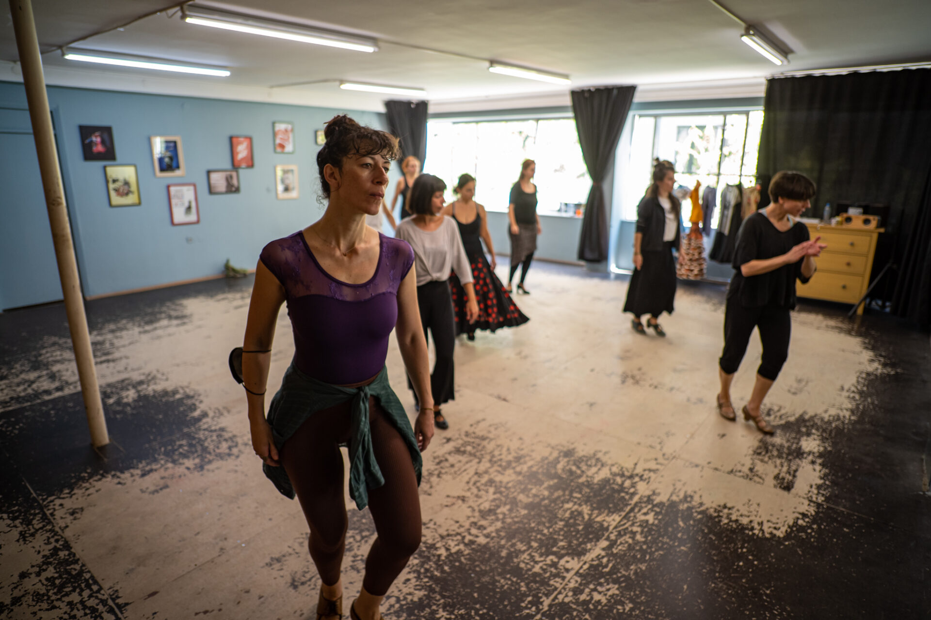 “Από το παράθυρο μας το μεσημέρι συνήθως ακούγεται κάποιος που τραγουδάει μάλλον από πάνω μας από το Ωδείο ams . Από τα άλλα παράθυρα ακούγεται ο κόσμος που είναι στην ταβέρνα του Πόντου. Το βράδυ επίσης μπορεί να έχει κανένα μουχαμπέτι στον Πόντο, ή κάποια συναυλία κάτω στο στο κραου (καινούργιος χώρος) ή κάποια πρόβα ακούγεται ενίοτε μουσική surf, ή παραδοσιακή ή και κάποτε ακούγονταν και οι speakeasies. Επίσης παλιότερα είχαμε μια βιοτεχνία ρούχων ακριβώς απέναντι μας. Μεγάλοι άνθρωποι που κάνανε τη δουλειά τους μάλλον πολλά χρόνια. Μετά τον κορονοϊό απέναντι μας έχουμε διάφορα άτομα κάθε μέρα ή εβδομάδα κι άλλα που μένουν στα δωμάτια που φτιάξανε και τα νοικιάζουν σε τουρίστες. Μετά τον κορονοϊό έχουν ανοίξει αρκετά μαγαζιά καινούργια που δεν τα έχω εμπεδώσει όλα ακόμη. Κάποια άλλα κλείσανε. Σε αυτή την γειτονιά, μπορεί κανείς να βρει μαγαζιά και βιοτεχνίες ρούχων, γραφεία δικηγόρων, σχολές χορού και ωδείο, καλλιτεχνικά εργαστήρια, yoga studios, το νέο στέκι μεταναστών μέχρι εναλλακτικούς χώρους συναυλιών, συνοικιακούς φούρνους και καφέ, airbnb και ταβερνάκια και φυσικά όλα τα φυτώρια στη Φράγκων! Όταν πρωτοήρθαμε στη γειτονιά πριν από 10 χρόνια ήμασταν αρκετά “μόνες” στη γειτονιά (Ορφανίδου-Βαλαωρίτου). Η πολυκατοικία μας άλλαξε πολύ από τότε που ήρθαμε το 2013. Στην αρχή ήμασταν μόνο εμείς και άλλα δύο στούντιο, ένα χορού και άλλο κρουστών. Μετά έφυγαν και μείναμε μόνες μας για λίγο. Ευτυχώς τώρα είμαστε με παρέα, έχουμε το ωδείο, το καλλιτεχνικό εργαστήρι kristiboni και το κέντρο ημέρας προσφύγων Alkyoni.Εμείς και τα προβάδικα. Μετά έγινε μια μικρή αναβάθμιση-ανάπλαση των δρόμων/πεζοδρομίων/φωτισμού. Ειδικά μετά τον κορονοϊό έγιναν μεγάλες επενδύσεις σε airbnb, οι λίγες βιοτεχνίες που είχαν απομείνει έκλεισαν, ένα μεγάλο κτίριο ανακαινίστηκε σε φοιτητικά δωμάτια και κάπως έχουμε παραπάνω παρέα τώρα στη γειτονιά. Από τη μία είναι ωραία, γιατί κάπως έχει ζωντανέψει η γειτονιά , αλλά κρατάμε και μια επιφύλαξη, να μη χάσει τον καλλιτεχνικό της χαρακτήρα, ειδικά με την έντονη εμφάνιση των airbnb.Το φλαμένκο υπάρχει στην Θεσσαλονίκη εδώ και πολλά χρόνια, σίγουρα από το 2000. Κάπως έτσι ξεκινήσαμε και εμείς και μετά το συνεχίσαμε και εμείς από το 2009 και μέχρι σήμερα. Κάνουμε εμφανίσεις σε εξωτερικούς χώρους της πόλης αλλά και σε κάποια μαγαζιά η θέατρα. Είμαστε ενεργό κομμάτι της πόλης και υπάρχει κοινό που τον ενδιαφέρει και το απολαμβάνει, είτε σαν χορευτής είτε σαν παρατηρητής.”