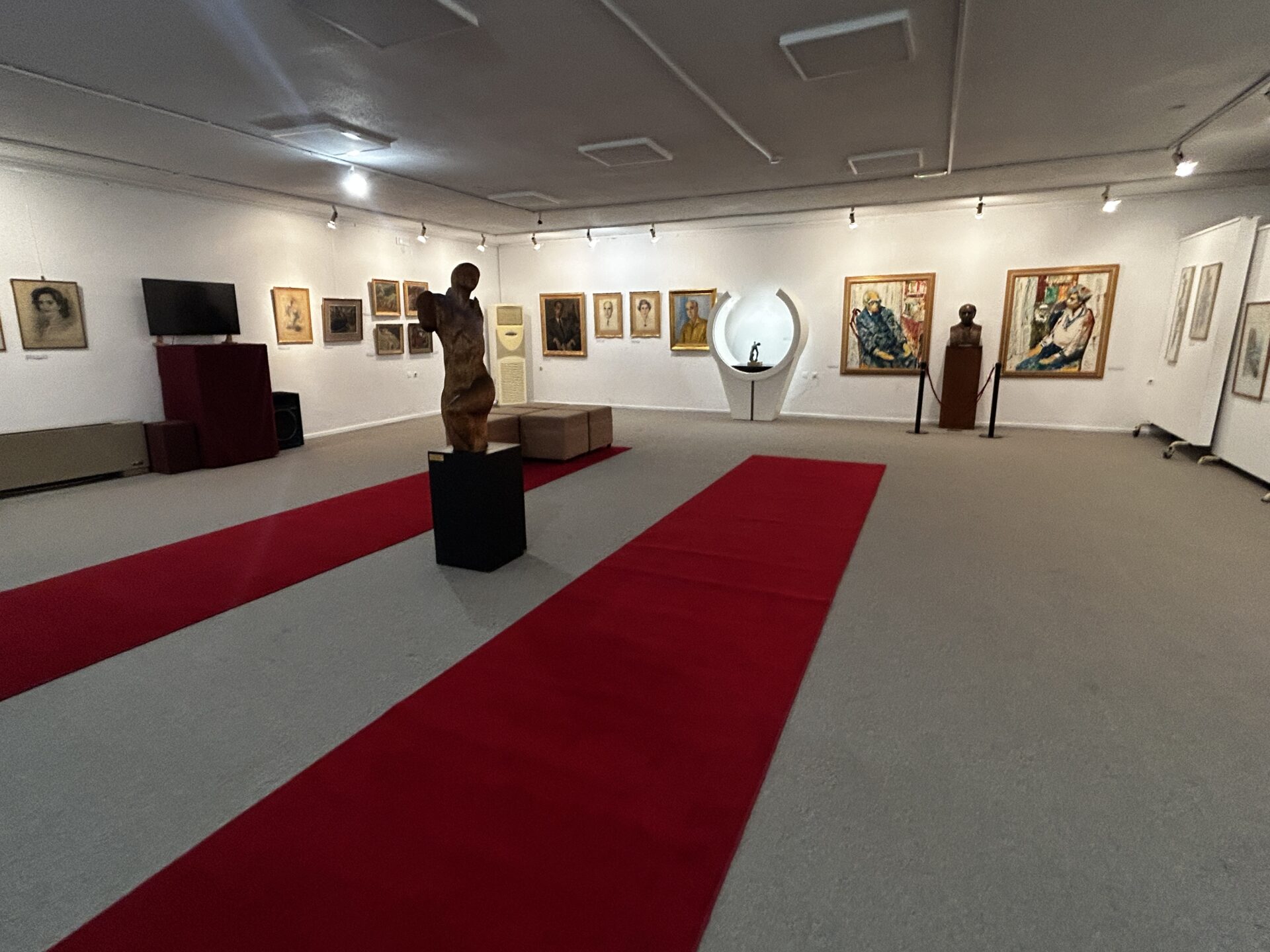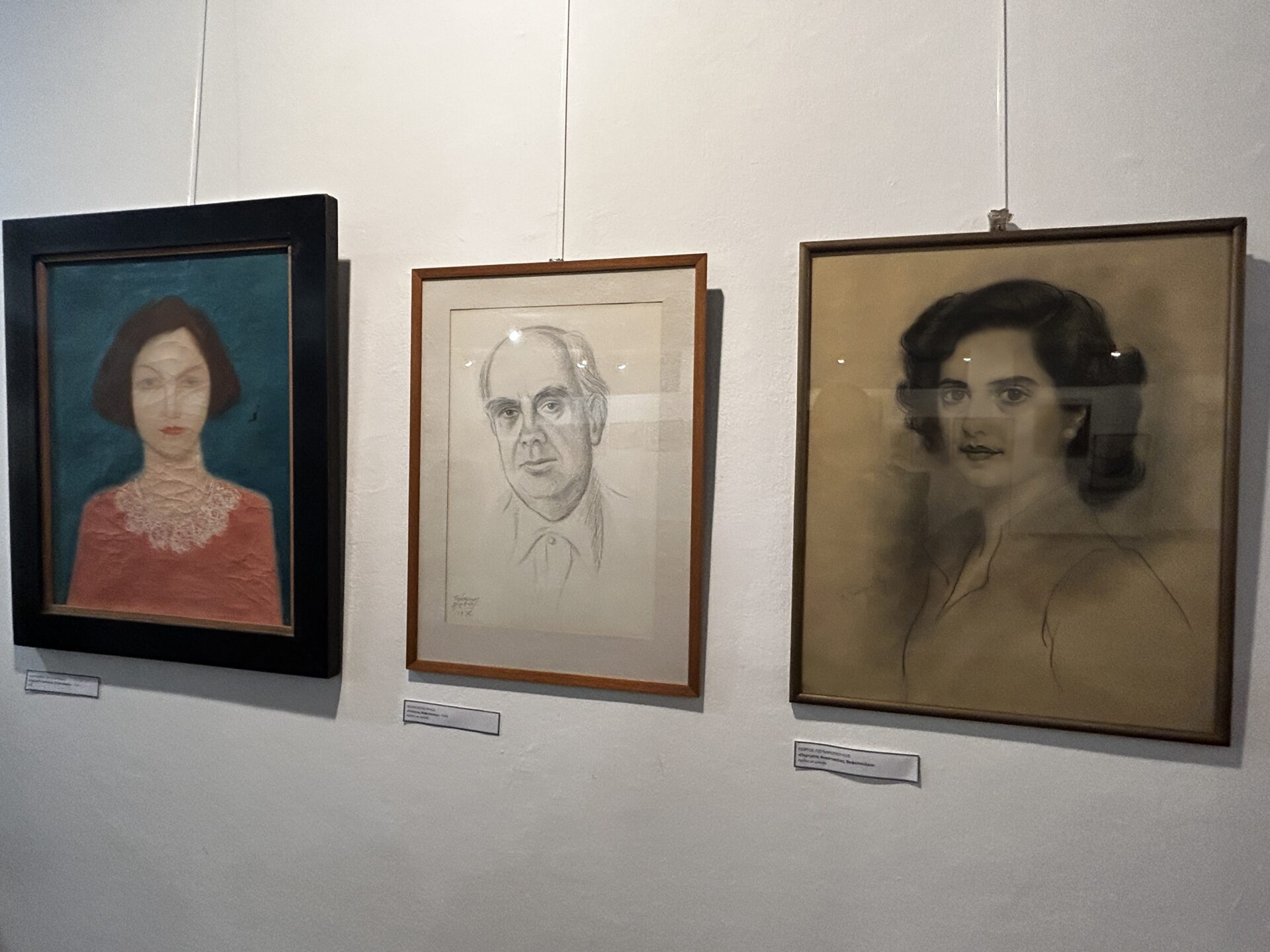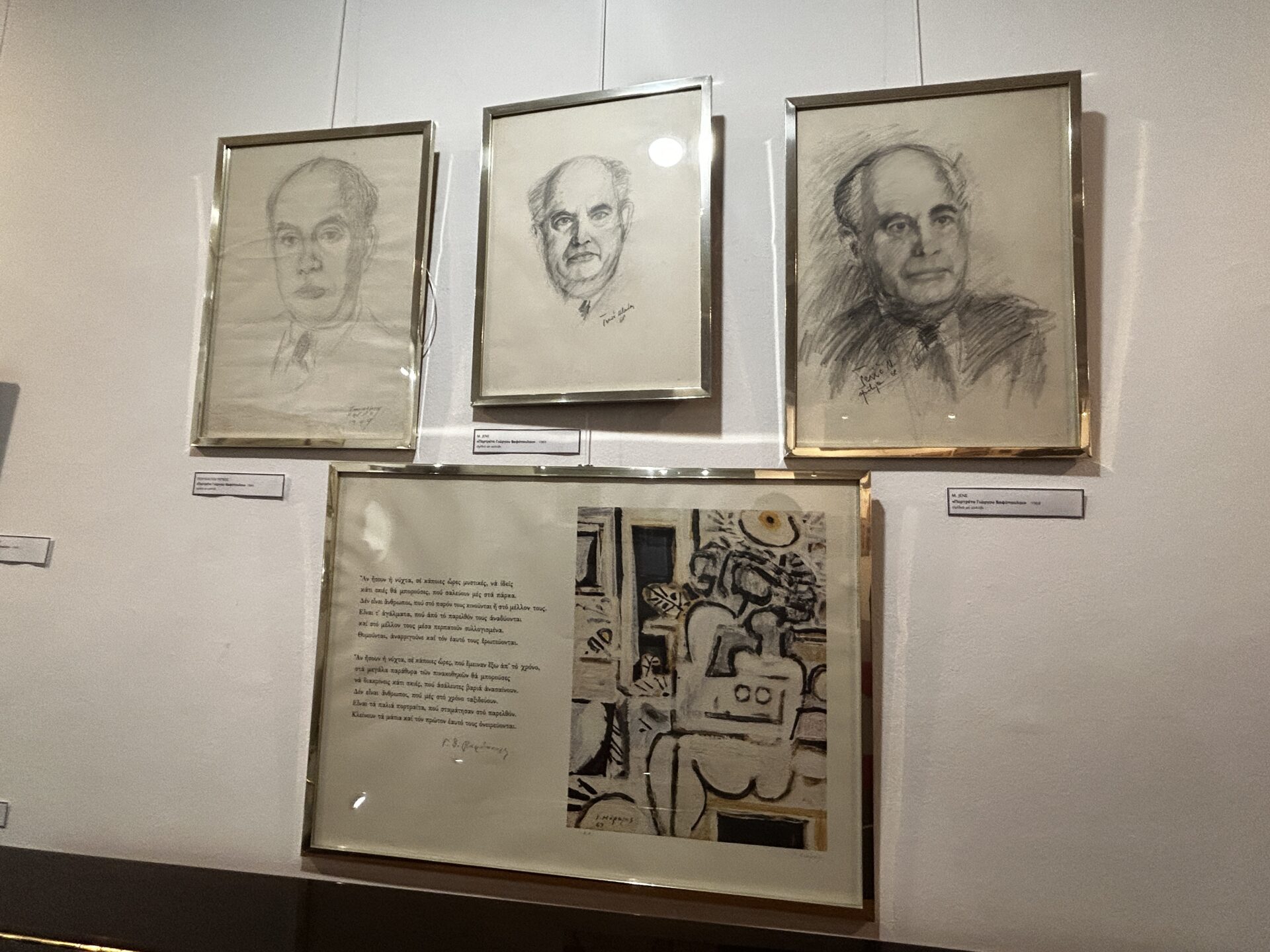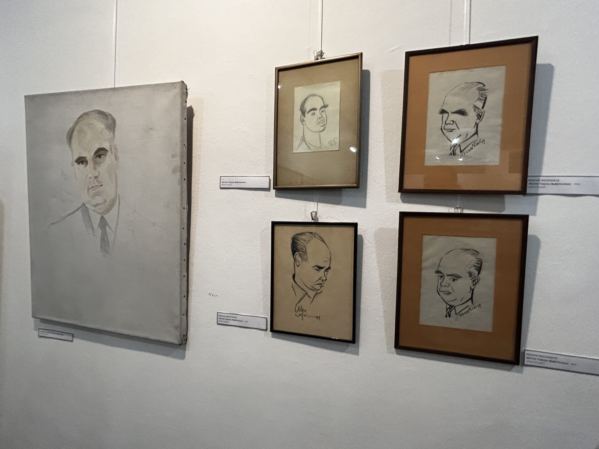 Μεταξύ άλλων έχουμε την ευκαιρία να δούμε μια σειρά από πορτραίτα του Βαφόπουλου, φιλοτεχνημένα από τον Μιχάλη Νικολινάκο, έργα των Ρέγκου, Γουναρόπουλου, Λούστα, Παραλή, Παπαδημημητρίου, ελαιογραφίες, τα δυο χαρακτηριστικά του πορτραίτα, το ένα από την εποχή της κατοχής, πιο σκοτεινό και αποστεωμένο, και το πιο πρόσφατό του πορτραίτο που είναι χρωματιστό, παστέλ, ζωντανό και αισιόδοξο.