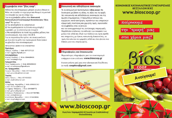 Το supermarket του Κοινωνικού Καταναλωτικού Συνεταιρισμού Θεσσαλονίκης ΒίοςCoop, που ανοίγει σε λίγες μέρες, βρίσκεται στην οδό Κων. Καραμανλή 42 στο ύψος του Ευκλείδη. Η θέση του επιτρέπει εύκολη πρόσβαση από το κέντρο, από τα ανατολικά αλλά και από την περιφερειακή (μέσω της Κατσιμίδη). Σκοπός του μη κερδοσκοπικού χαρακτήρα supermarket είναι η διάθεση ποιοτικών αλλά και φτηνών προϊόντων, όσο το δυνατόν περισσότερο προερχόμενα από συνεταιρισμούς αγροτών παρακάμπτοντας τους μεσάζοντες. H όλη δομή λειτουργίας του συνεταιρισμού εφαρμόζει τις συνεταιριστικές αξίες και αρχές με πρώτη την αρχή «ένα πρόσωπο-μια ψήφος» στη Γενική Συνέλευση, ανεξάρτητα από τις μερίδες που κατέχει το μέλος. Υπολογίζεται ότι όσοι αγοράζουν από το supermarket θα έχουν ένα μέσο ετήσιο όφελος 20% σε σχέση με τις τρέχουσες τιμές της αγοράς.