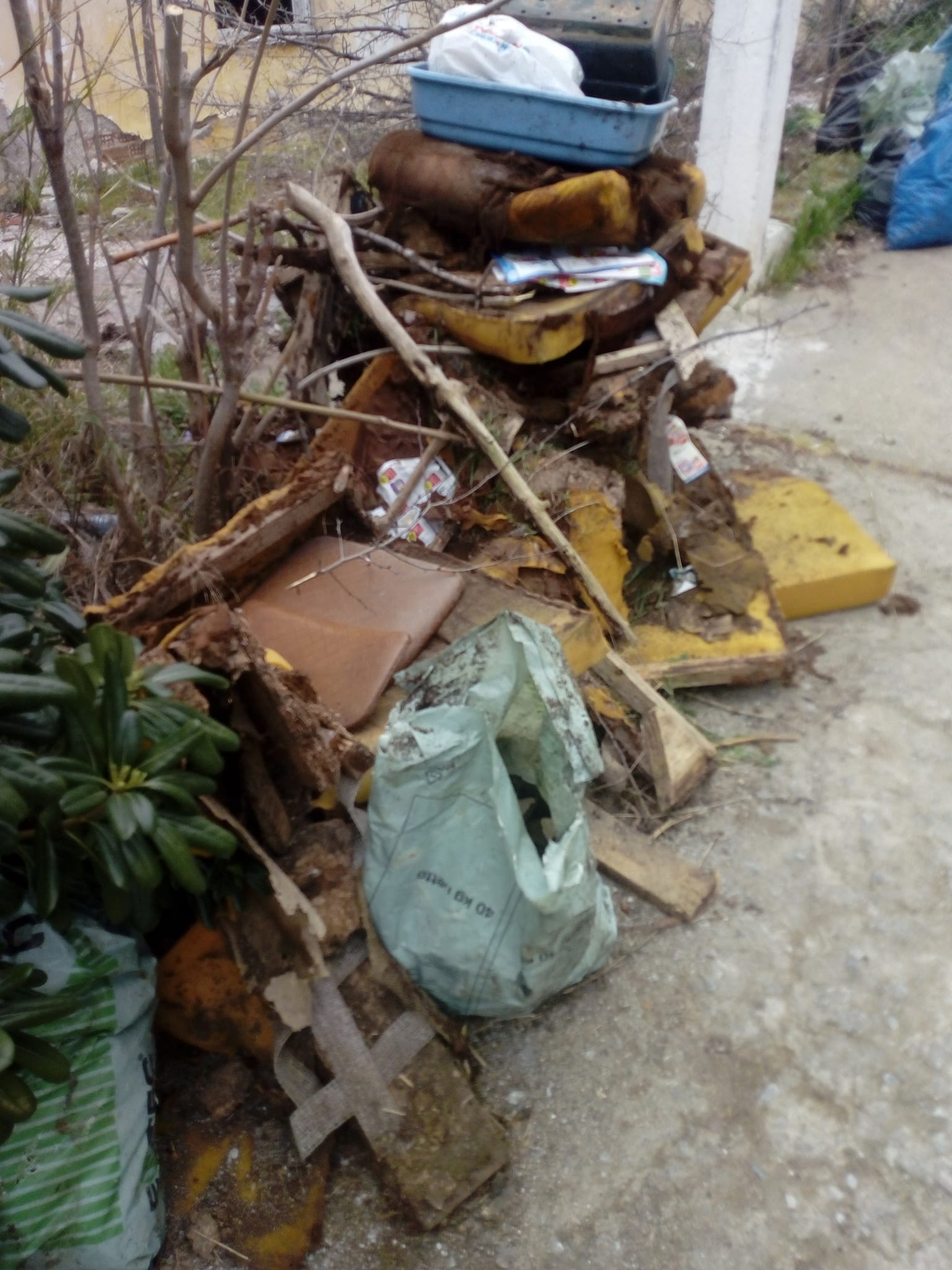 “Το σημείο αυτό βρίσκεται στην Άνω Τούμπα στο τέρμα της οδού Διαγόρα στην έξοδο της περιφερειακής οδού δίπλα στο υδραγωγείο. Πήρα την απόφαση γιατί η κατάσταση που αντίκρισα όταν κάποια μέρα επέλεξα την διαδρομή αυτή κατευθυνόμενη στο δάσος ήταν σοκαριστική. Κατοικώ στην περιοχή τα τελευταία 10 χρόνια, από το σημείο δεν περνώ ούτε το βλέπω από την κατοικία μου. Είναι ένα σημείο δίπλα στο δάσος, με θέα τον Θερμαϊκό και την πόλη που κάποιοι το μετέτρεψαν σε μία απέραντη χωματερή, ένα τεράστιο μπαζότοπο. Δεν υπήρχε περίπτωση όλο αυτό να με αφήσει αδιάφορη.