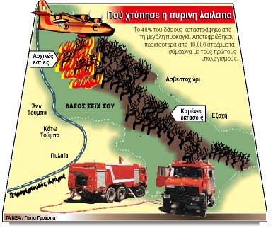 * Στον τόπο της μεγάλης πυρκαγιάς βρέθηκε χθες και ο πρόεδρος της Πολιτικής Άνοιξης Αντώνης Σαμαράς, ο οποίος κατηγόρησε για αδράνεια και αποσυντονισμό τον κρατικό μηχανισμό.