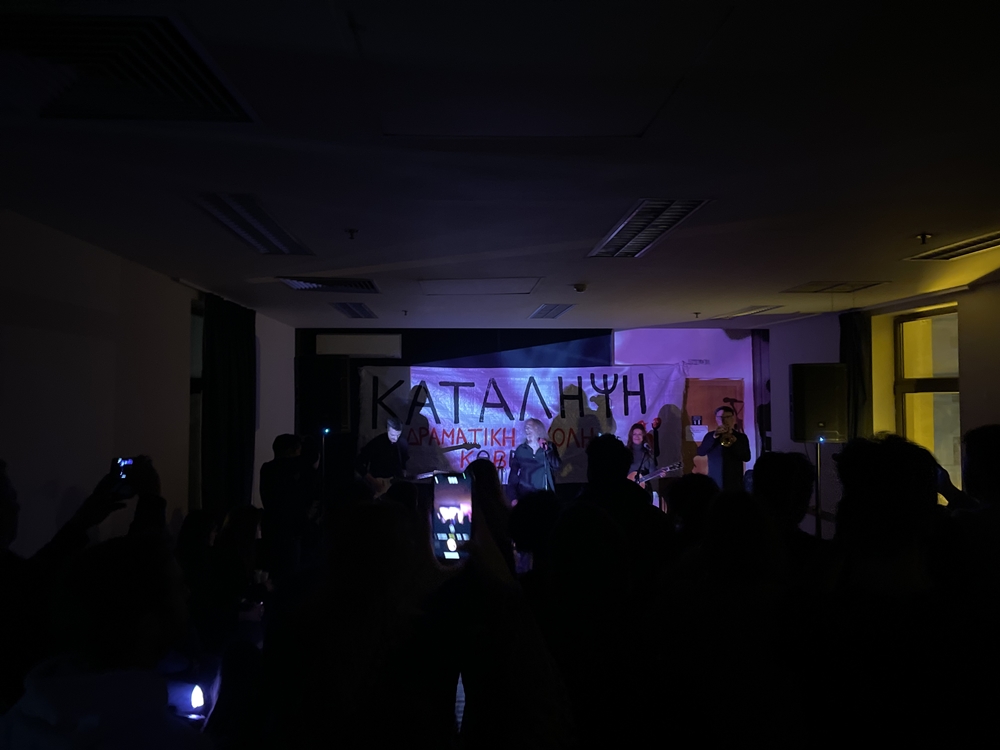 Ο ΛΕΞ, ο Γιάννης Αγγελάκας με το συγκρότημα του 100°C και ο Δημήτρης Ζερβουδάκης (πρόεδρος του ΔΣ του Συλλόγου Μουσικών Βορείου Ελλάδος) βρέθηκαν στον χώρο της κατάληψης και τραγούδησαν για τους σπουδαστές της Δραματικής Σχολής, σε μία μυστική συναυλία που απαγορευόταν μέχρι και οι αναρτήσεις στα social media ώστε να παραμείνει ιδιωτική και να μην αλλοιωθεί το νόημα και ο λόγος που στήθηκε.