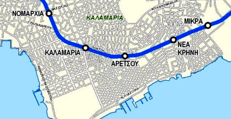 Το έργο της Επέκτασης προς Καλαμαριά, το οποίο ήδη βρίσκεται σε προχωρημένη φάση κατασκευής, περιλαμβάνει πέντε νέους Σταθμούς (Νομαρχία, Καλαμαριά, Αρετσού, Νέα Κρήνη και Μίκρα) με μήκος υπόγειας γραμμής 4,78 χλμ.