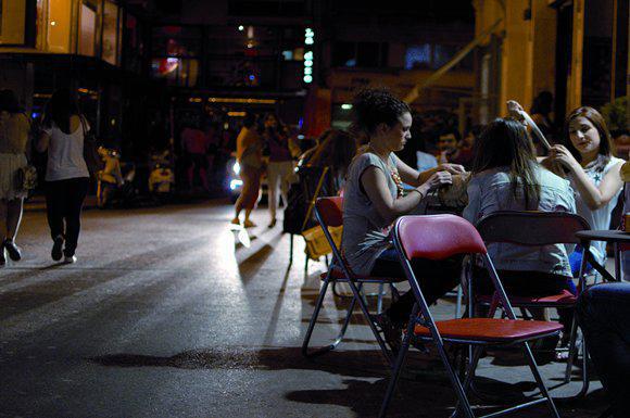 Αυτό που επισηµαίνουν οι περισσότεροι, όπως και ο industrial designer Θανάσης Μπάµπαλης που ζει και εργάζεται στην περιοχή, είναι ότι έχει χαθεί η ισορροπία µεταξύ της ηµέρας και της νύχτας: «Μ’ αρέσει που η πλατεία είναι ζωντανή, αλλά κάπου πρέπει να µπει ένα όριο. ∆εν µπορείς να ζήσεις και ν’ ακούς µουσική µέχρι το πρωί. Το ξέραµε ότι η ζωή µέσα στο κέντρο θα ήταν δύσκολη, αλλά σ’ αυτή την περίπτωση έχει χαθεί η ισορροπία. Νοµίζω ότι µόνο οι µικτές χρήσεις των καταστηµάτων µπορούν να αλλάξουν την κατάσταση», σηµειώνει. Τα βράδια η γειτονιά µεταµορφώνεται σ’ ένα απέραντο κλαµπ. Σε κάθε βήµα η µουσική αλλάζει και πιάνεις ήχους από τσιφτετέλια µέχρι τα τελευταία του Moby. Τα τραπεζοκαθίσµατα καταλαµβάνουν το οδόστρωµα, οι µπάρες και τα ποτά κατεβαίνουν στο πεζοδρόµιο, οι µάχες των ντεσιµπέλ αρχίζουν και το ανακάτεµα δηµιουργεί έναν ενοχλητικό θόρυβο. «Η ηχορύπανση είναι ο λόγος που θα µ’ έκανε να φύγω», λέει ο Μάριος Σπύρογλου της Kinetik. «Μόλις σουρουπώνει τα πράγµατα δυσκολεύουν και όταν πρέπει να παραδώσεις ένα έργο µέσα στις προθεσµίες του πελάτη δεν υπάρχουν ωράρια. Είναι τόσο κοντά το ένα µπαρ µε το άλλο που θα ήταν προτιµότερο να παίζουν όλοι την ίδια µουσική και κάθε φορά ένας άλλος θα έκανε την επιλογή». Για µόδα που θα περάσει κάνει λόγο ο ∆ηµήτρης Κολιαδήµας των Designers United και τονίζει ότι για να επιβιώσει η περιοχή θα πρέπει να αναπτυχθεί σε πολλά επίπεδα. «Η ενέργεια που υπάρχει τη νύχτα πρέπει µε κάποιον τρόπο να µεταφερθεί και το πρωί. Να ενεργοποιηθεί η περιοχή και την ηµέρα και ν’ αποκτήσει ενιαία ταυτότητα και αισθητική».