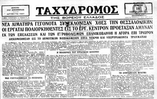 Τα γεγονότα της 9ης Μαίου 1936 δεν ήταν το μοναδικό αιματοκύλισμα των εργατών της Θεσσαλονίκης, καθώς είχε προηγηθεί τρία χρόνια πριν ένα άλλο μακελειό στη βορειοελλαδική πρωτεύουσα με τη μανία των κρατικών αρχών και των οργάνων της “τάξης” να ξεσπά κατά των συνδικαλισμένων εργατών αλλά και του δημοκρατικού τους δικαιώματος για την ελευθερία του “συνέρχεσθαι”.