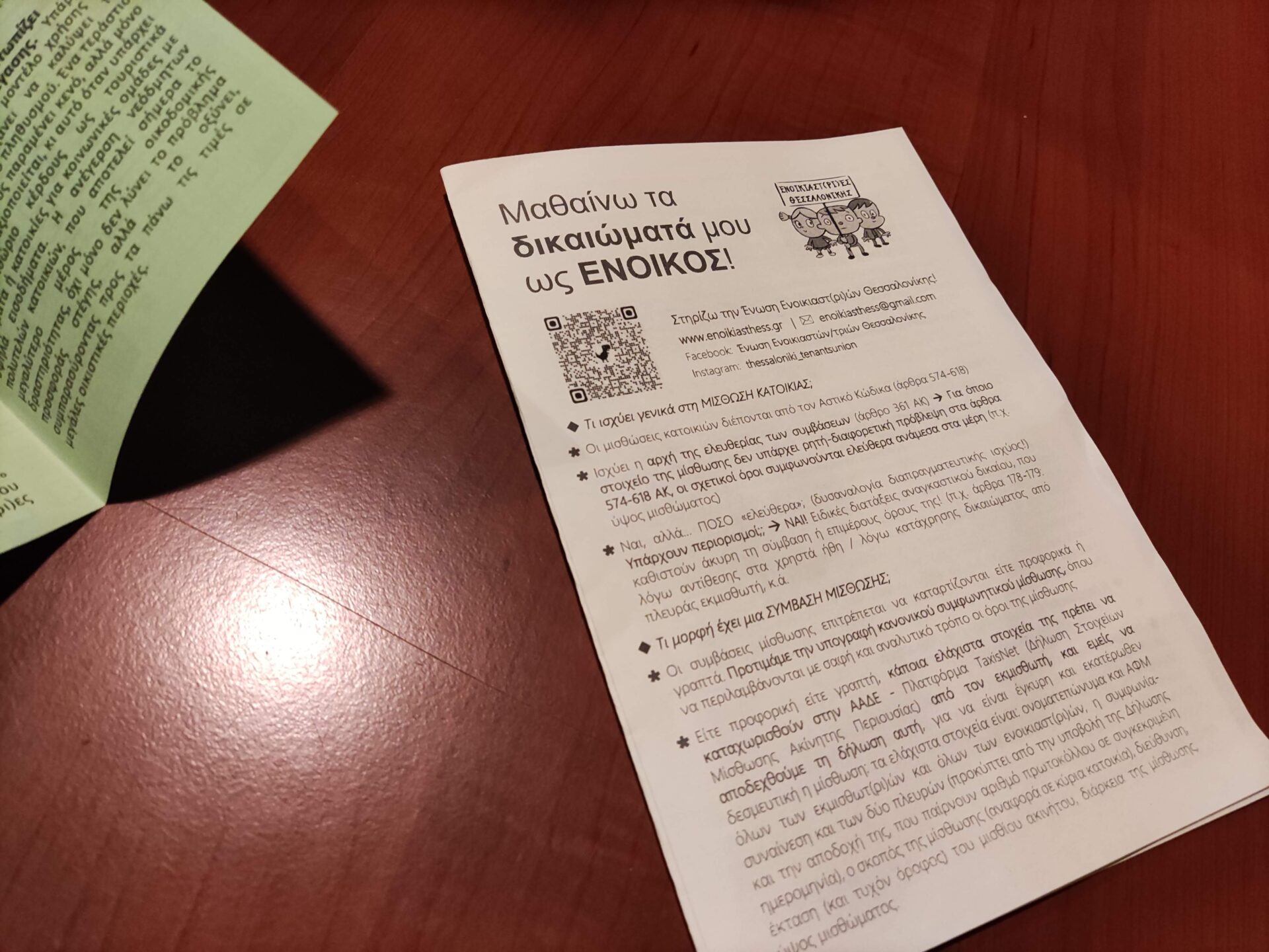 Τέλος, η Ένωση έχει εκδώσει και ένα φυλλάδιο που καταγράφει συνοπτικά τα δικαιώματα των ενοικιαστών στην Ελλάδα.