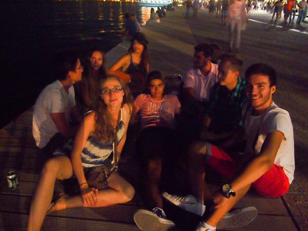 Λίγο πιο κάτω μια παρέα εφήβων. Ένας κύκλος γεμάτος ζωή που πολλοί θα ζήλευαν. Τους συστήνομαι και με χαρά παίρνουν στα χέρια την κιθάρα, και με ελαφρώς παράφωνες φωνές, τραγουδούν και φωτογραφίζονται. Δεν ζητούν λεφτά ούτε φήμη. Απολαμβάνουν την βραδιά και διασκεδάζουν με τον δικό τους ξεχωριστό τρόπο, προκαλώντας ένα μειδίαμα στους περαστικούς για την ανεμελιά που αποπνέουν. Στην κιθάρα και στο τραγούδι, η αξιολάτρευτη Νίκη.