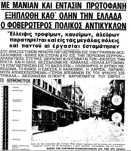 Το κρύο ήταν τόσο τσουχτερό που οι μαρτυρίες της εποχής αναφέρουν ότι πάγωναν ακόμη και τα βρεγμένα ρούχα στα μπαλκόνια των πολυκατοικιών της πόλης, ενώ προκλήθηκαν και ζημιές σε κεντρικούς δρόμους.