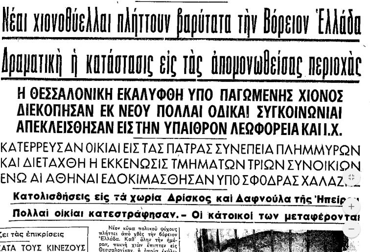 Είχαμε σημειώσει τότε ότι πολλοί παλιοί Θεσσαλονικείς αναφέρουν ότι οι δύο παραπάνω χιονιάδες δε θύμιζαν σε τίποτα τα όσα βίωσε η πόλη, αλλά και ολόκληρη η χώρα, τον Ιανουάριο του 1963, αλλά και πέντε χρόνια μετά τον Ιανουάριο του 1968.