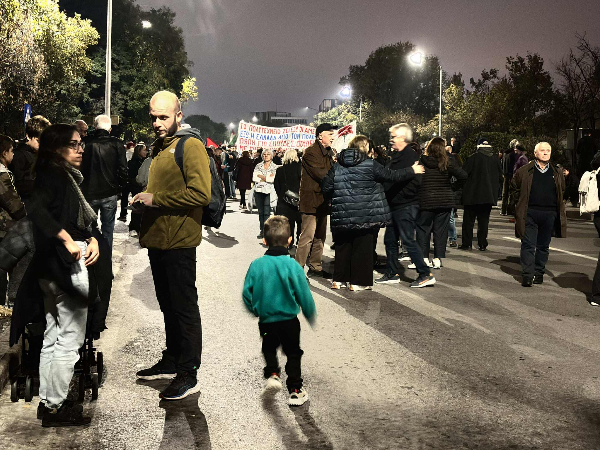 Η ατμόσφαιρα είναι έντονη και παρούσα, με πολίτες όλων των ηλικιών να συμμετέχουν, φωνάζοντας συνθήματα όπως «Οι νέοι δε ξεχνάμε το ’73, ψωμί παιδεία ελευθερία» και «Η ιστορία έχει μια σωστή πλευρά με την Παλαιστίνη ως την λευτεριά»