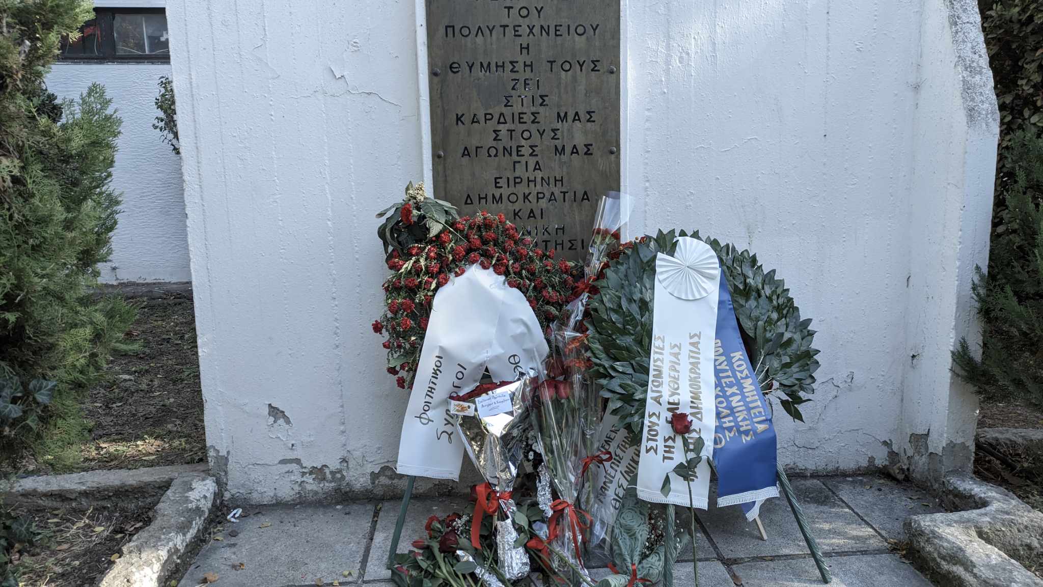 Την ίδια ώρα, πολίτες κάθε ηλικίας προσέρχονται στο μνημείο που υπάρχει στο χώρο αφήνοντας ένα γαρύφαλλο και ένα στεφάνι.