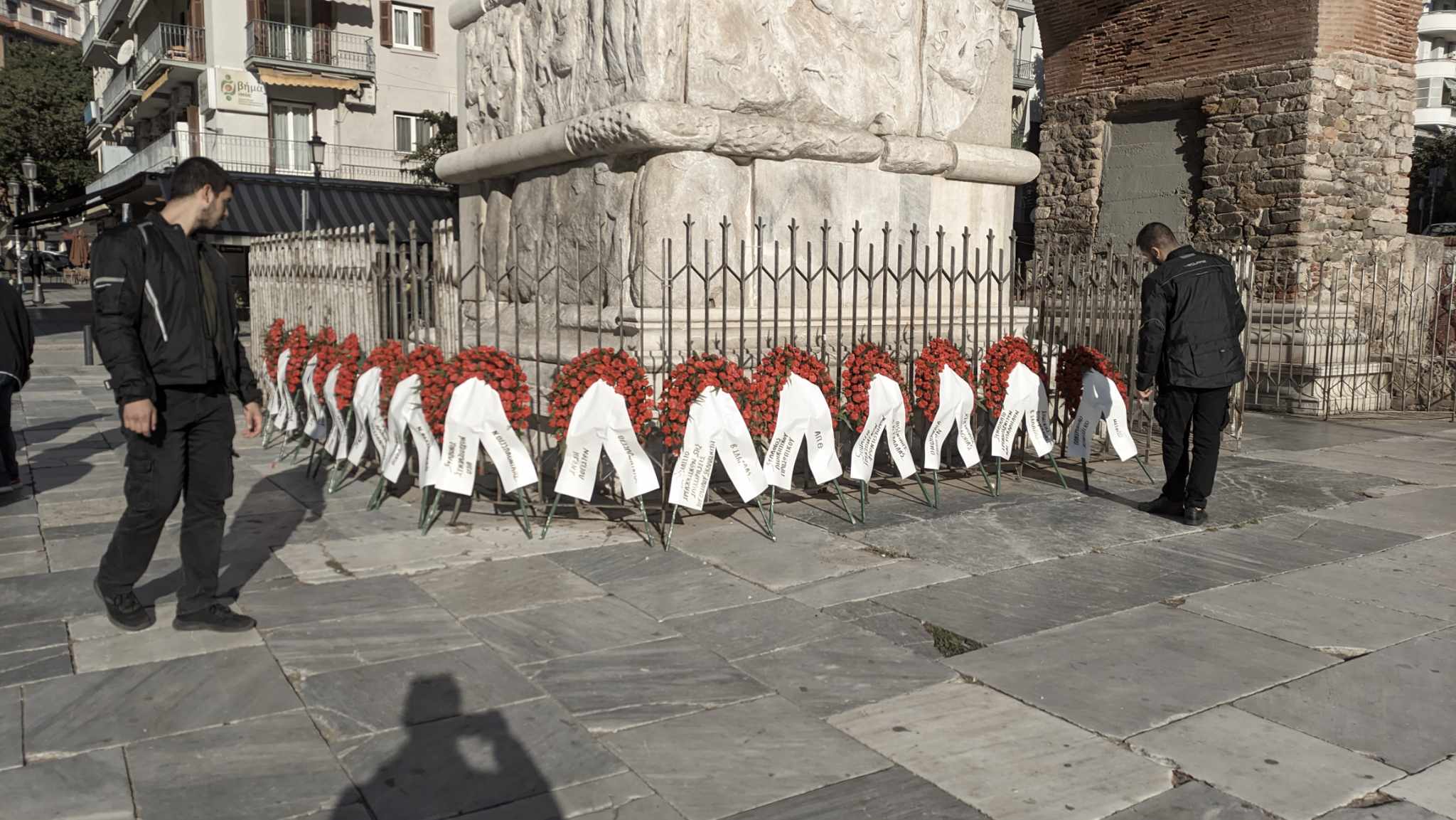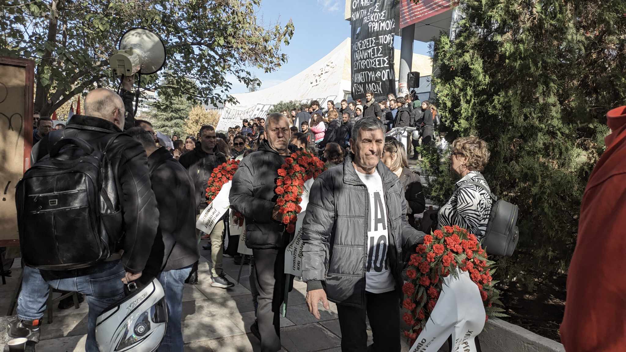 Απλοί πολίτες κάθε ηλικίας προσέρχονται για να αφήσουν ένα λουλούδι - Πλήθος φοιτητών στην Πολυτεχνική Σχολή του ΑΠΘ
