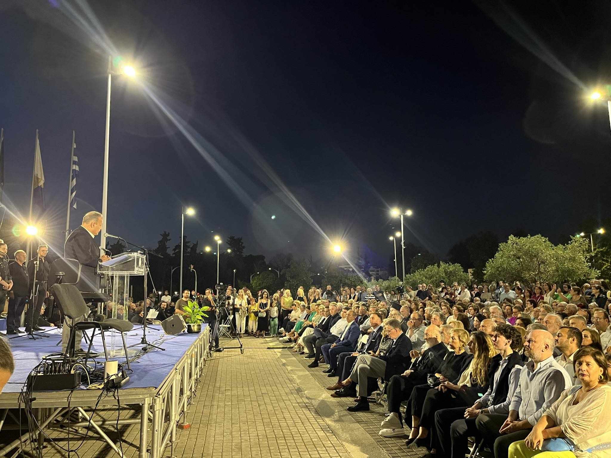 Πλήθος πολιτών συγκεντρώθηκε σήμερα, το απόγευμα του Σαββάτου 28 Σεπτεμβρίου, στον αύλειο χώρο του Δημαρχείου Θεσσαλονίκης, όπου εκεί, σε ειδική εκδήλωση, ο δήμαρχος Θεσσαλονίκης, κ. Στέλιος Αγγελούδης, ο πρόεδρος του δημοτικού συμβουλίου, κ. Σπύρος Βούγιας και σύσσωμο το δημοτικό συμβούλιο, απένειμαν στο Διονύση Σαββόπουλο το Αργυρό Μετάλλιο της πόλης.