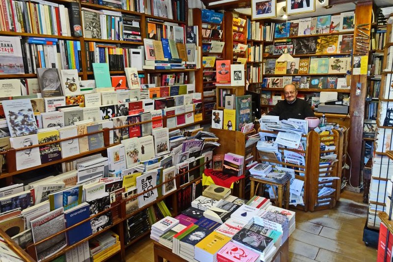 Θυμίζει βιβλιοπωλείο στο Παρίσι ή τη Βαρκελώνη, εντούτοις αναπνέει στη σκιά των αρχαίων της Γούναρη. Ένα μικρό μαγαζί μ’ έναν μεγάλο, όμως, θησαυρό κρυμμένο στις χειροποίητες, ξύλινες προθήκες και πάγκους του -κρεμασμένα και από το ταβάνι-, που είναι παραγεμισμένα με βιβλία. Μπαίνοντας, σε ξεμυαλίζει η νοσταλγική μυρωδιά του ξύλου και του χαρτιού, ενώ οι μελωδίες του Χατζηδάκη πλημμυρίζουν τον χώρο.
